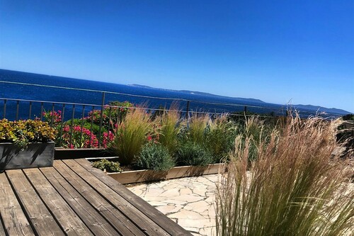 Ground floor of a pleasant villa with magnificent sea view and shady garden.