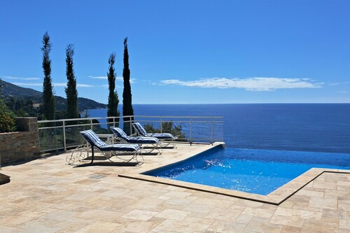 Beautifully renovated 50s villa with panoramic view of the Golden Isles and infinity pool.