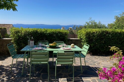 Studio apartment in the hills above Sainte-Maxime. It is located in a private residence with private parking. There is also a swimming pool for residents. The studio apartment has a view of the Golfe de Saint-Tropez.
