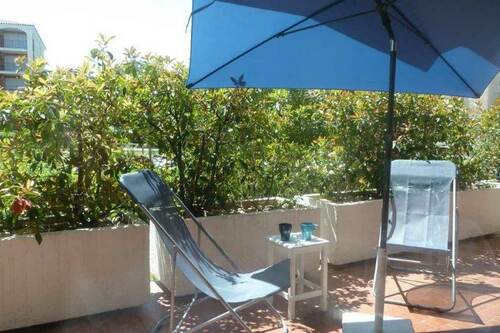 Pleasant beachfront accommodation with a terrace overlooking the Golfe de Saint-Tropez. Shops are nearby: market, bakery. The beach is a 5-minute walk away. It can accommodate up to four people.
