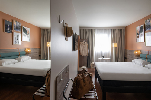 At 500m from the village. In the heart of chestnut trees, your room with terrace on the swimming-pool. View on the village and swimming-pool design made in wood.