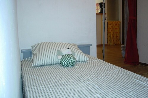 Part of the owner's house, terrace, parking. Ground-floor : living-kitchen, 1 room with double bed, salon with 2 single beds, bathroom.