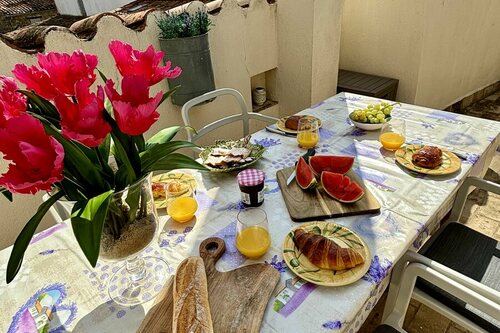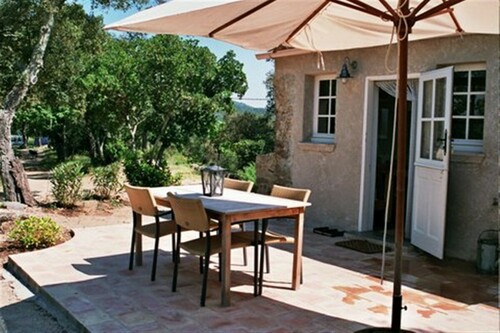 Part of the owner's house and next to another seasonal rental, terrace. Walks in the Maures mountains, several hiking tours. Public swimming pool at 500 m. Parking.