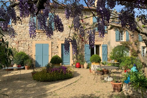 Beautifully decorated guest rooms in a large Provencal farmhouse with swimming pool and garden. The property is located in the medieval village of Grimaud.