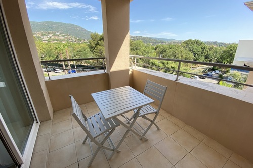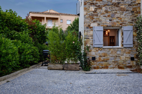 At a few kilometres from the coast, in the Provencal village of La Garde-Freinet, with a magnificient view to Saint-Tropez and over the Gulf of Saint-Tropez, the Mediterranean, the southern Alps and Corsica.