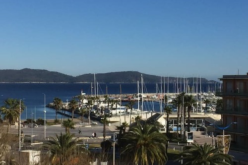 Air-conditioned studio in town center overlooking Cavalaire harbor.