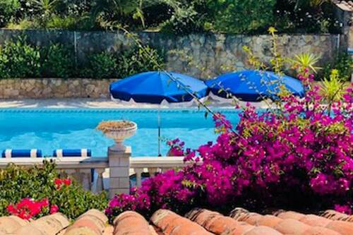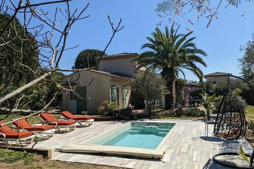 Lovely neo-Provencal house with heated pool, very sunny, surrounded by a large landscaped garden and numerous equipped terraces, 2 steps from the village.