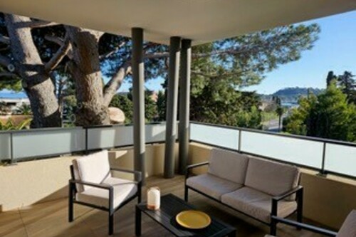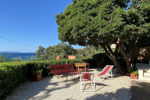 85m2 duplex apartment with garden (like a house), magnificent sea view over the Illes d'Or at the foot of the Toulon / St Raphaël cycle path and 10' from the Canadel and Pramousquier beaches.