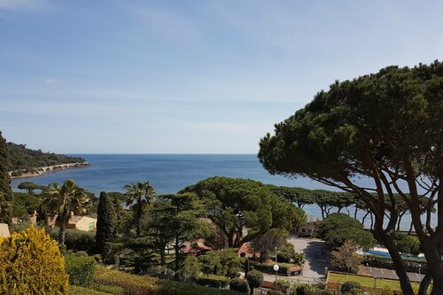 Apartment sleeps 4, close to the beaches and 1.2 km from the city center. Terrace with lounge and dining area. Beautiful living room with fully equipped kitchen, air conditioning and wifi. Very quiet residence in 3 hectare park with swimming pool and box.