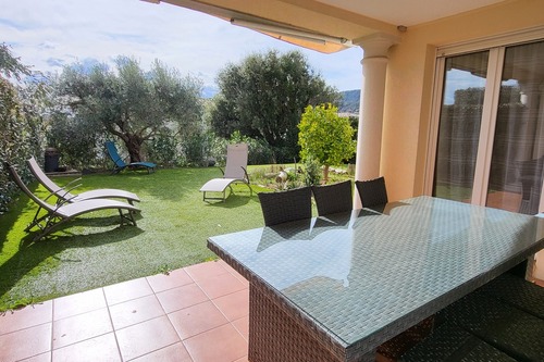 Beautiful, bright T3 apartment with a 200m² private garden, a large 13m² covered terrace with a blind ban and two private parking spaces in a quiet, secure, landscaped residence with a swimming pool, paddling pool, hot tub, pétanque field and small playground for children.
