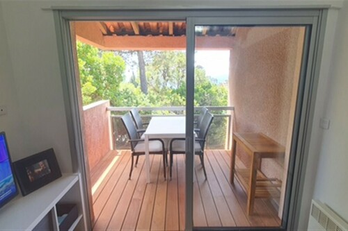 Canadel apartment on 1st floor with sea view, fitted kitchen, bedroom with tv, bathroom, separate toilet and 5m2 terrace...ideal for a pleasant vacation.