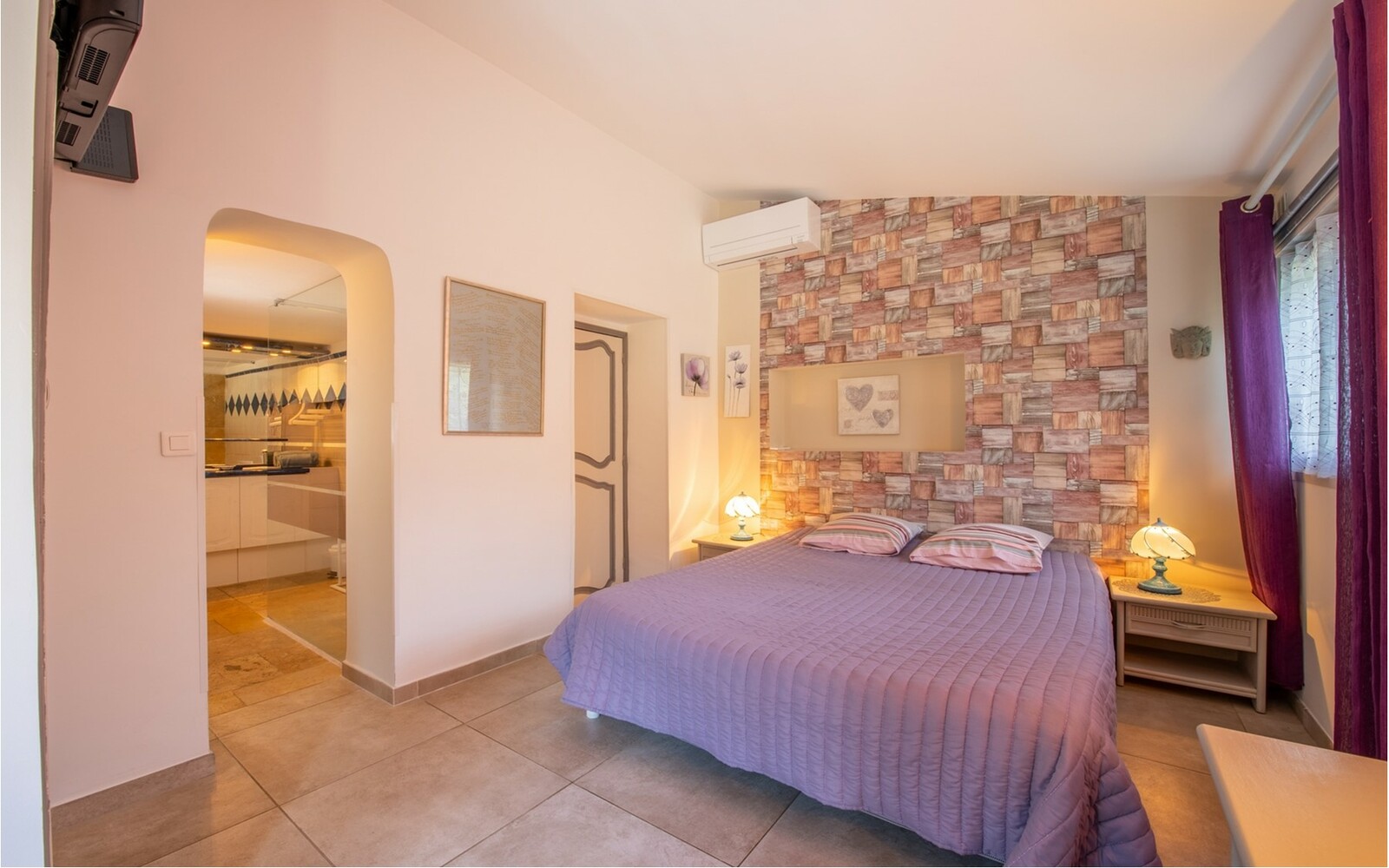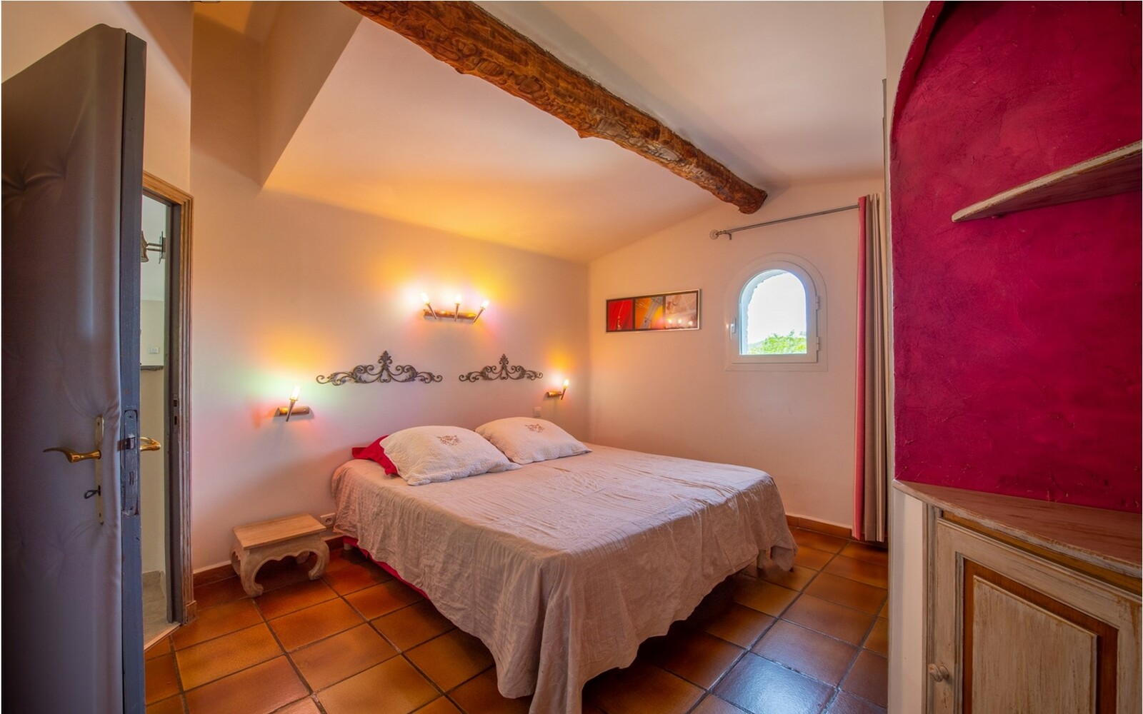 Sophie welcomes you to a house of character set between vineyards and forest, 12 km from Saint-Tropez and the most beautiful beaches of the Gulf of Saint-Tropez.The property's 3,200m² of peaceful grounds leave plenty of space for relaxing during your stay, with a large swimming pool with sunbathing facilities, garden lounge, summer kitchen, breakfast terraces, varied vegetation and private, enclosed parking. All accommodation is equipped with air-conditioning (cold/hot), TV, wifi, individual bathrooms/wc.