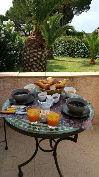 Our 3 host rooms are waiting for you in a relaxing place, the garden invites you with a view on Grimaud village and his castle, these hills, at the calm in the Gulf of St Tropez but staying close of St Tropez, with a large free closed car park ....
