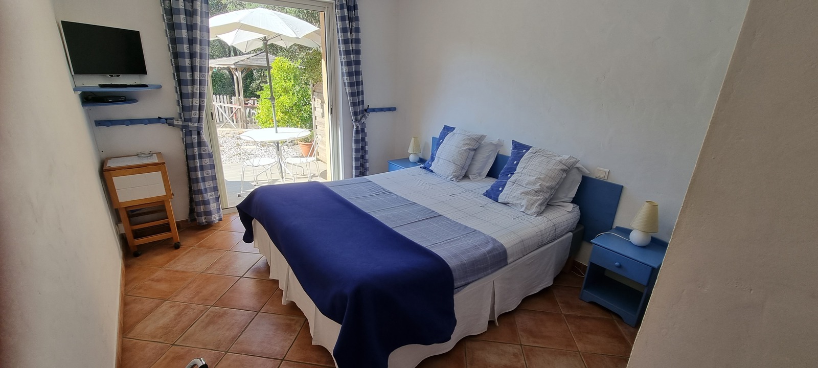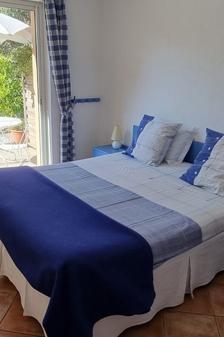 At 500m from the village. In the heart of chestnut trees, your room with terrace on the swimming-pool. View on the village and swimming-pool design made in wood. One bedroom for 2 people.