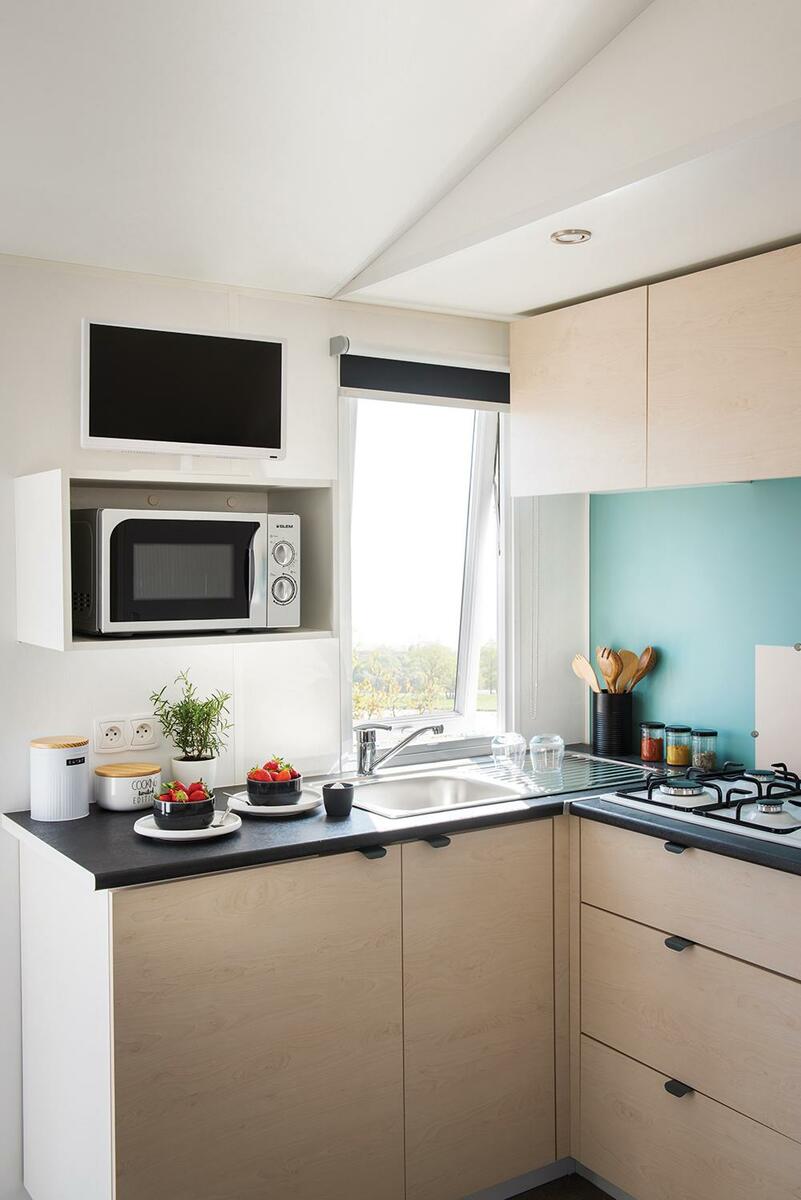 - Mobile homes equipped with every comfort and tastefully decorated, for two to six people, on the seafront or vineyard side.