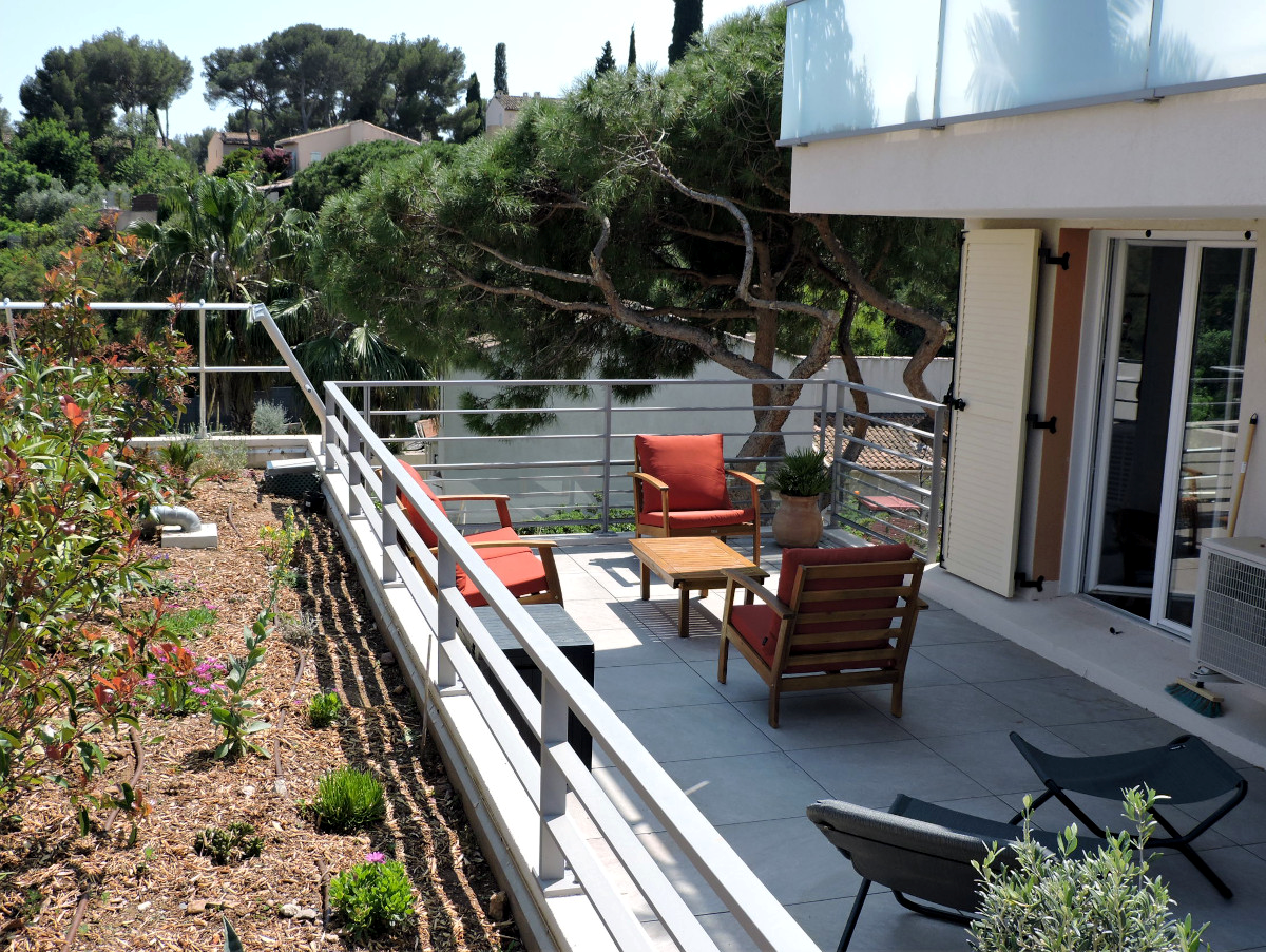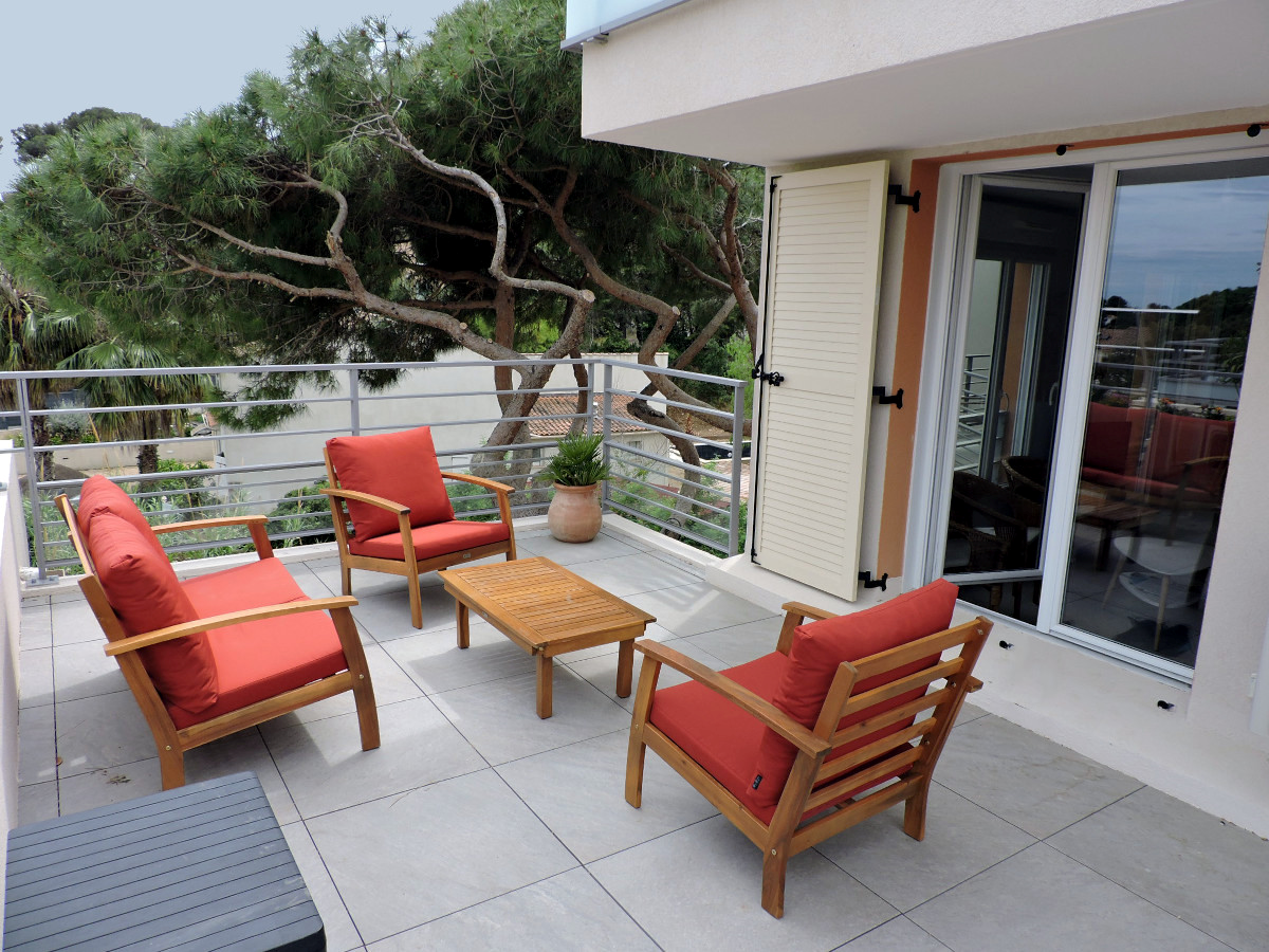 La Cîme du Pin is a modern, spacious holiday flat for 4 to 6 people, located in Cavalaire sur Mer, in the brand-new Val d'Azur residence in the Canissons district.