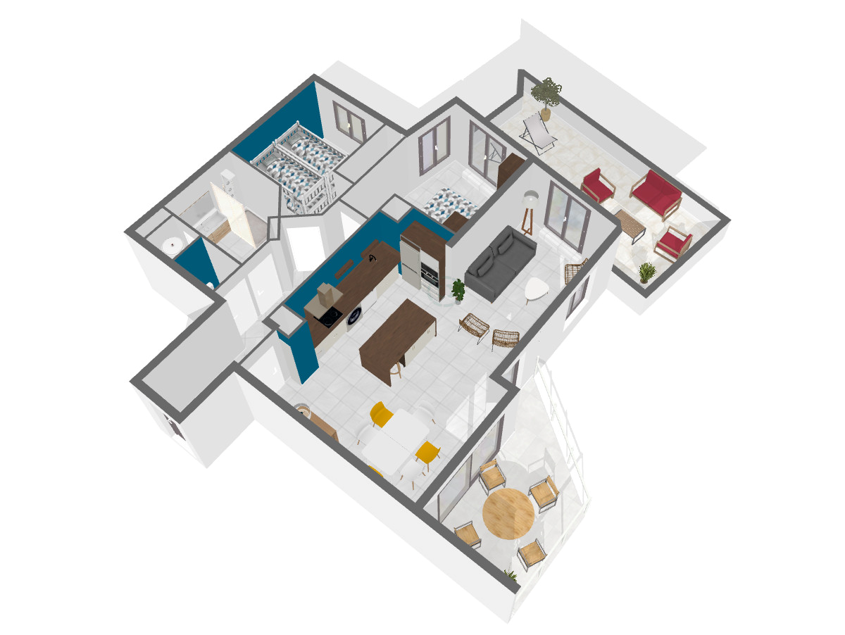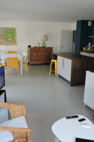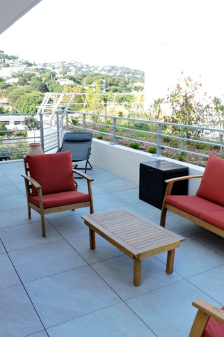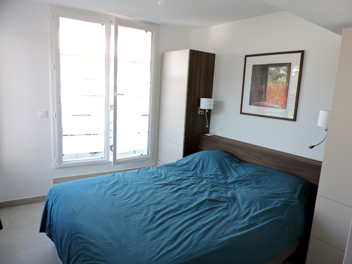 The flat offers 75 m² of living space and comprises a large living room (fully-equipped kitchen, living room and lounge) and two bedrooms.On the upper floor, from the large terrace (25 m²) or balcony (10 m²), you can look out over the sea and enjoy uninterrupted views of the green neighbourhoods and surrounding hills.