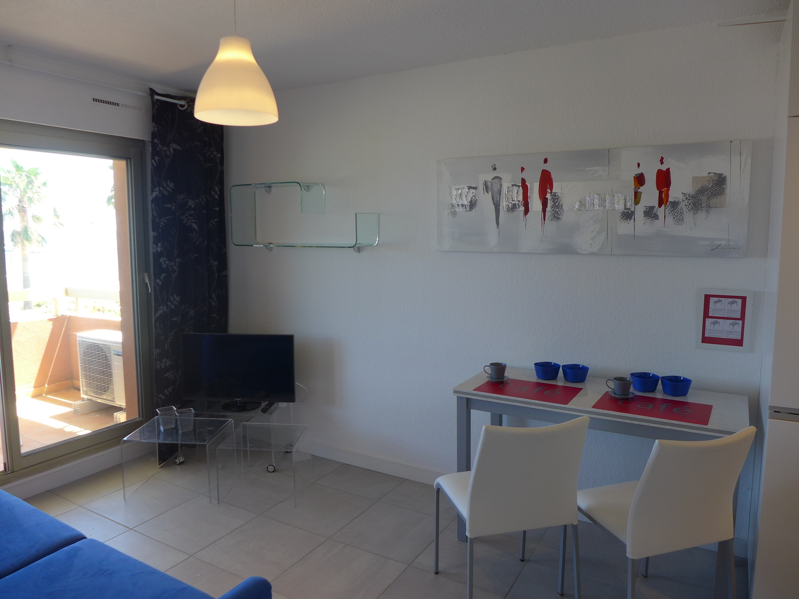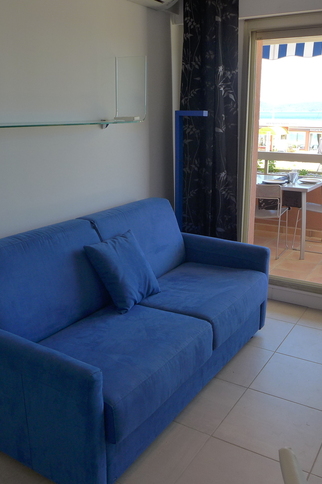 Enclosed night space with access to the terrace and sea view, fold-away bed (140) which frees up all the space during the day, flat screen TV, fold-away table.