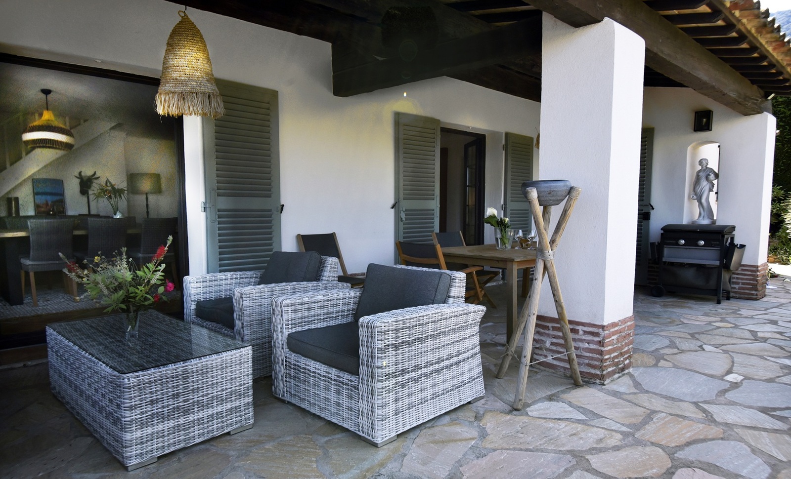 Spacious and cosy, it has a covered terrace with a comfortable lounge area, a dining table and a plancha grill for convivial meals.