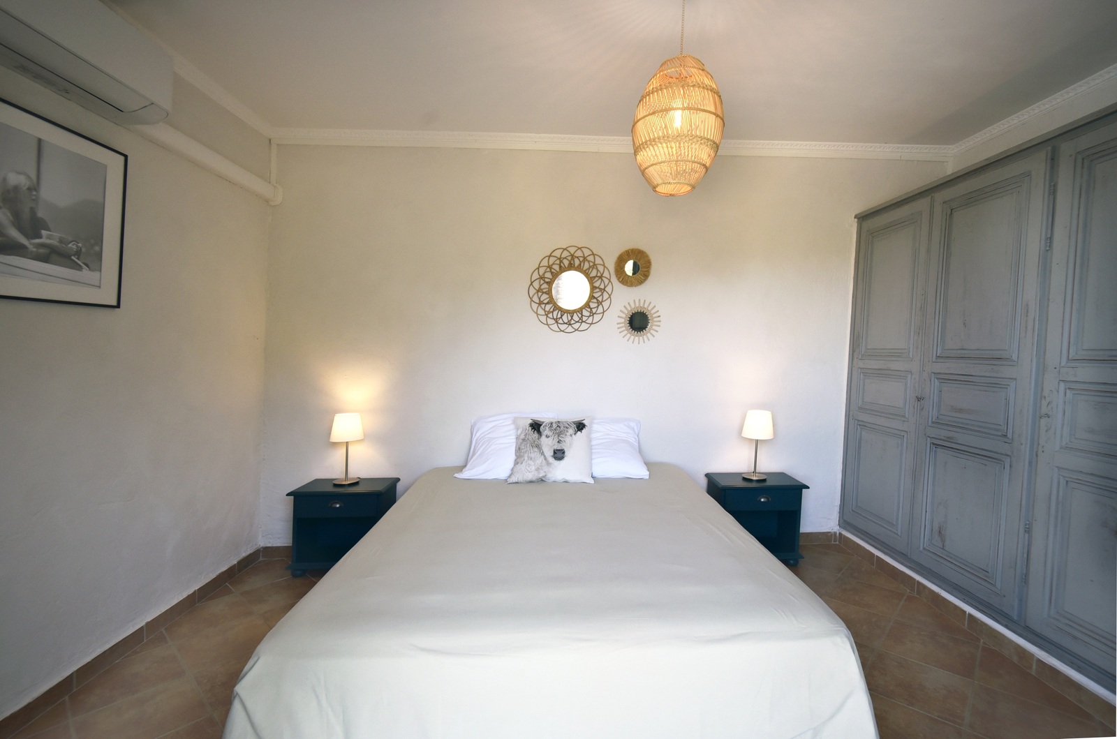 The villa offers 4 spacious bedrooms with storage in the main house that can accommodate up to 8 people and an adjoining studio with a bedroom and private bathroom for 2 people.