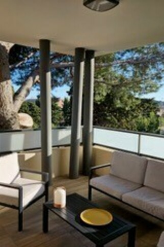 50 m² flat, fully air-conditioned: 2 bedrooms, terrace and private double garage.
