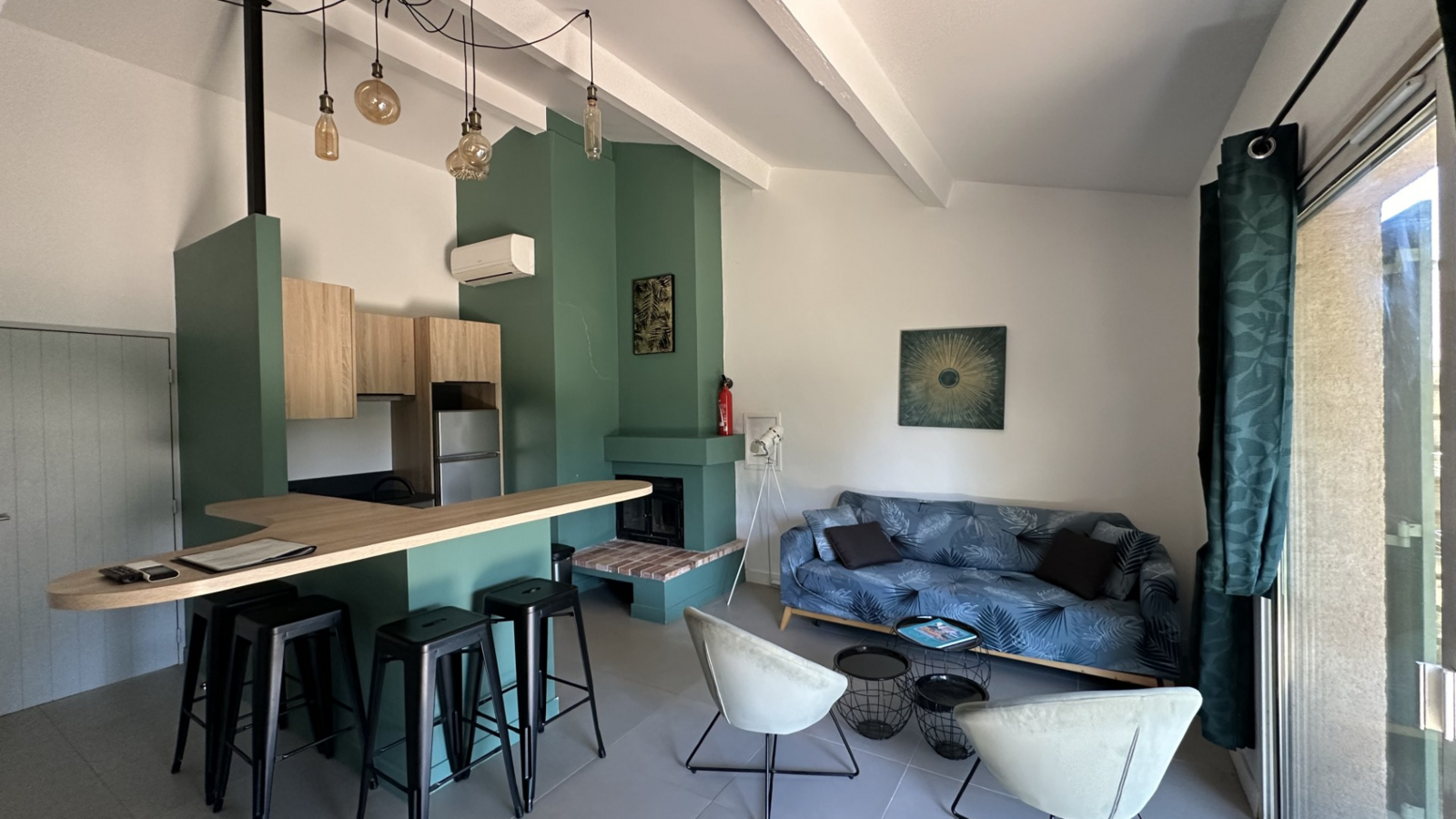 Charming 2-room apartment on a wine-growing estate ideally located with the tranquility of the countryside and 15 min from the beaches. Access to the property's lake for walks.