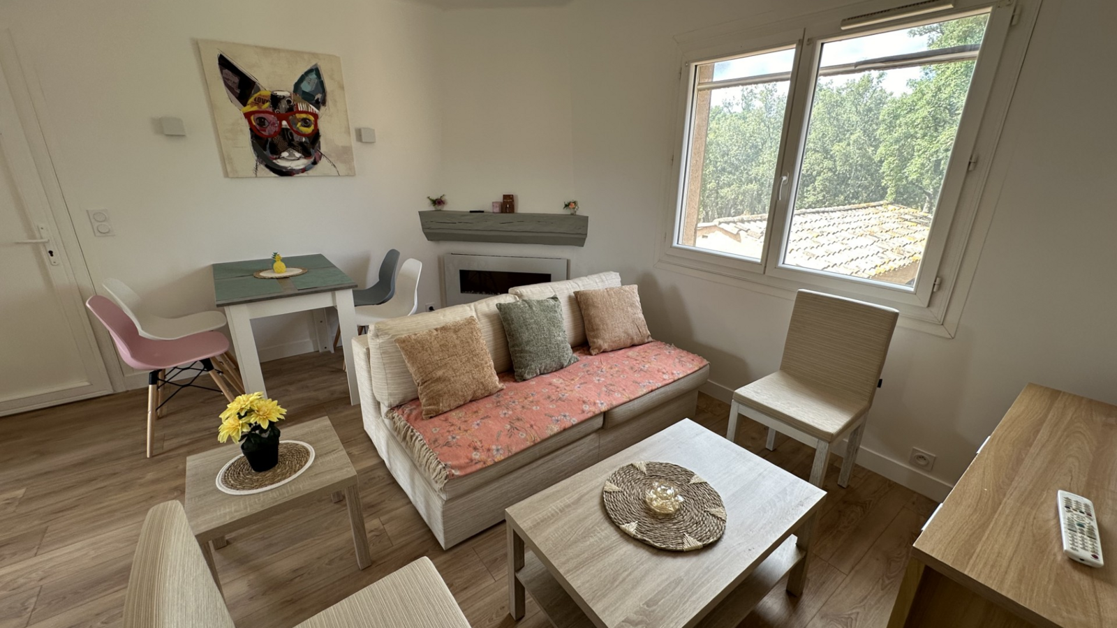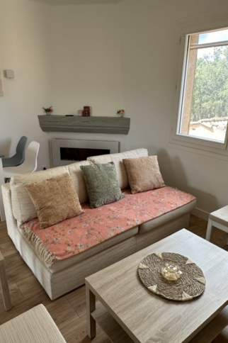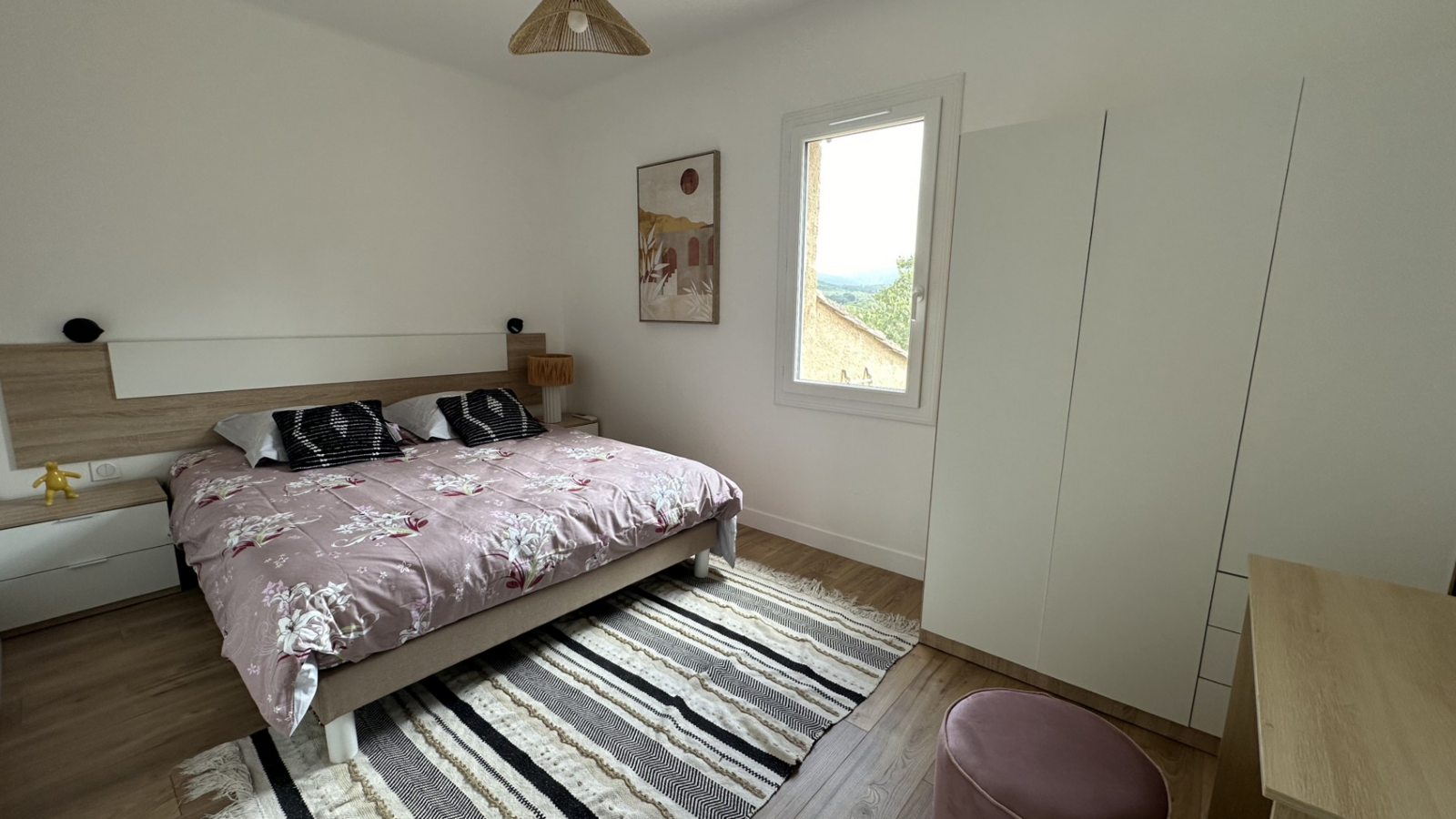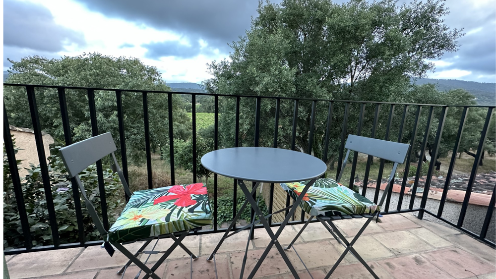 3-room apartment on 1st floor, comprising 2 bedrooms with double bed and dressing room, 1 x 160 cm bed and 1 x 140 cm bed. Reversible air-conditioning, fully-equipped kitchen opening onto living room, small balcony overlooking vineyards. Living room with TV and wifi. Non-convertible sofa, parking space.