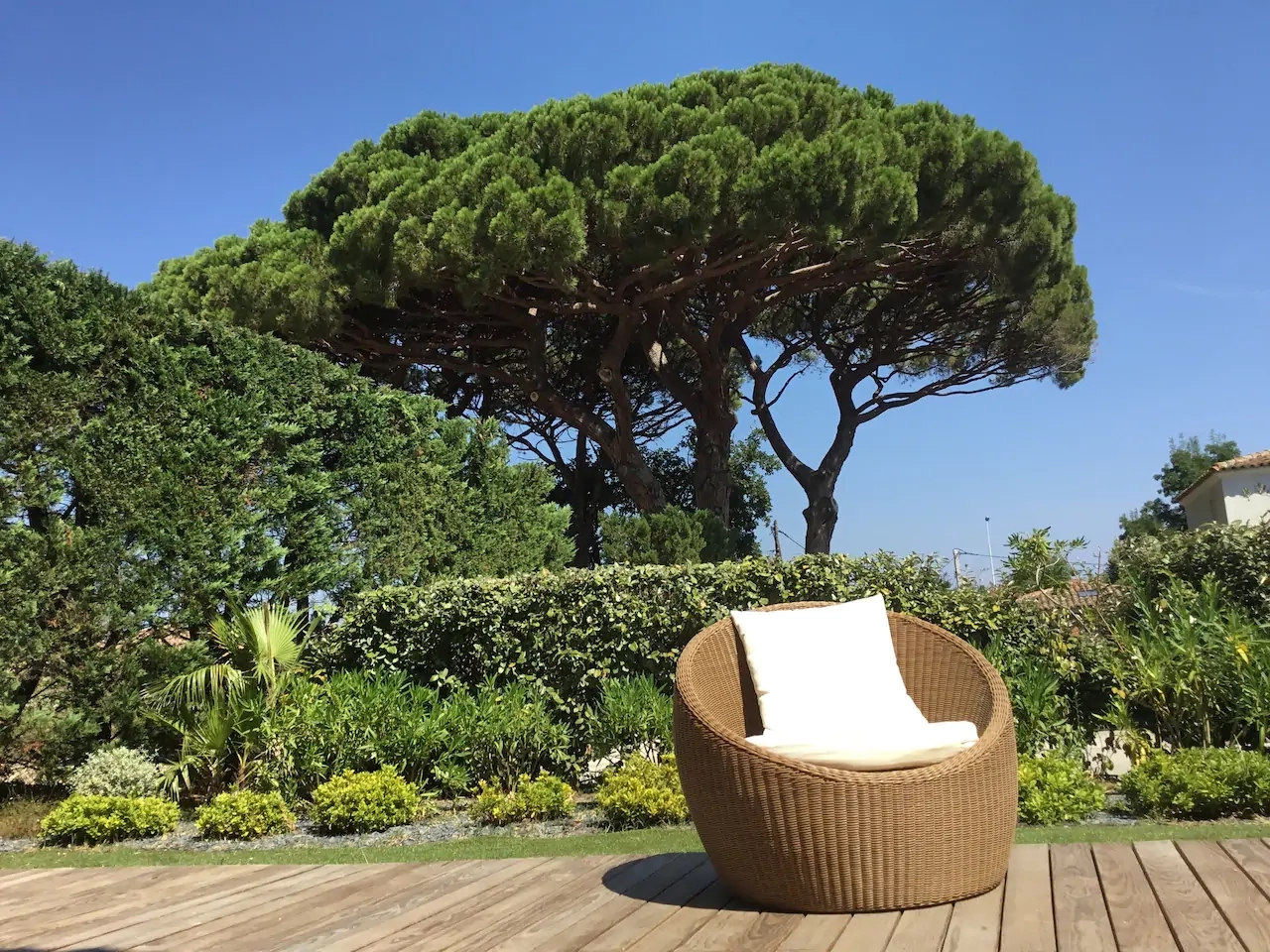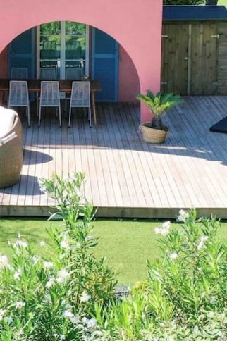 A beautiful teak terrace gives you a beautiful outdoor living space.