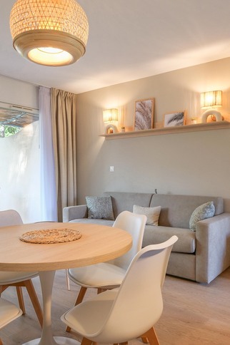 Shaded by umbrella pines, access to the residence is secured by an automated gate and perimeter fence, and there is ample parking.The residence is made up of one-story Provencal country houses, divided into apartments, and small detached houses. Renovated in 2023, the apartments offer comfort and conviviality in a warm, cosy atmosphere.