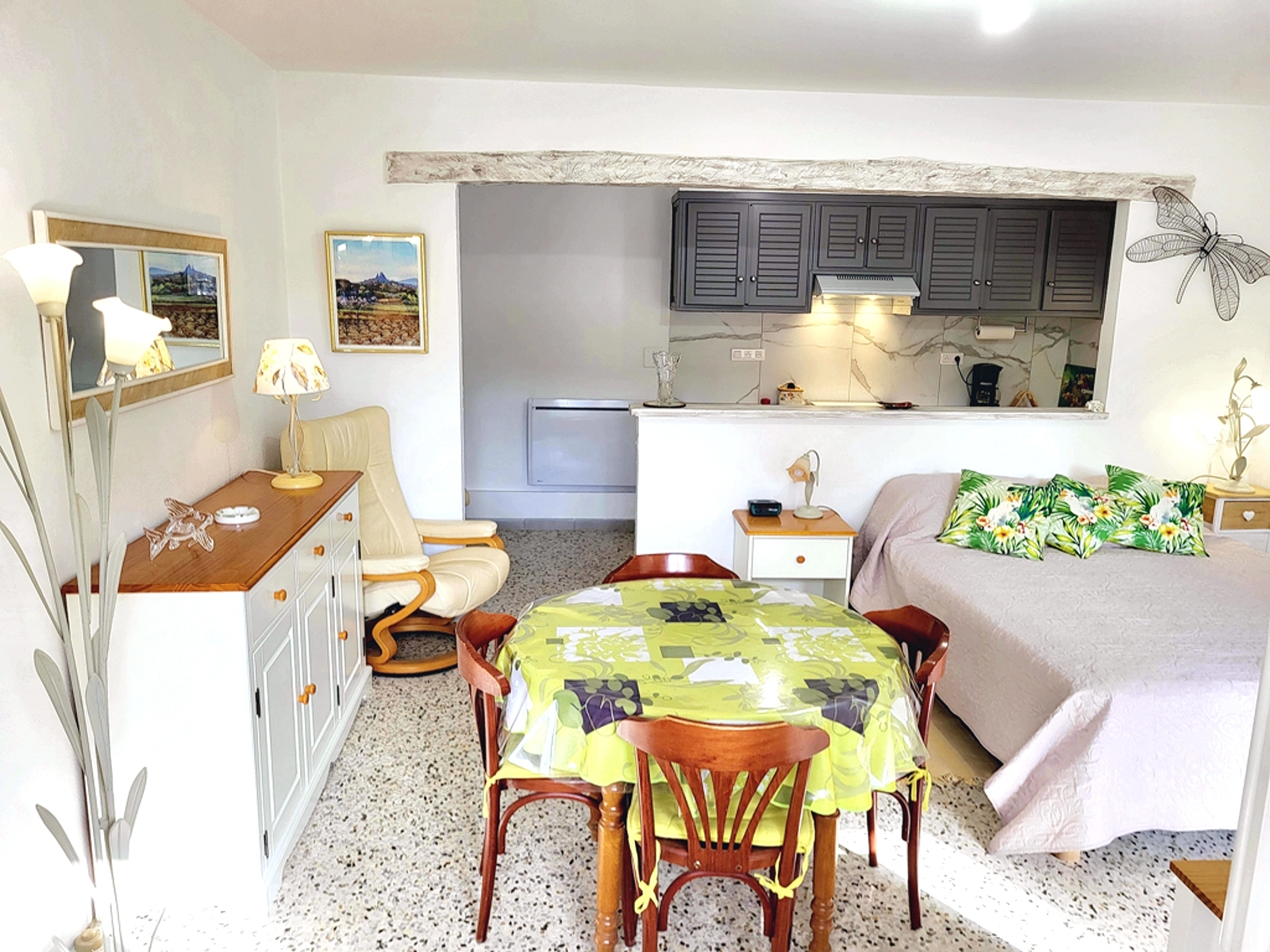 Spacious STUDIO on the garden level of a Provencal farmhouse.It comprises :