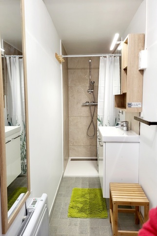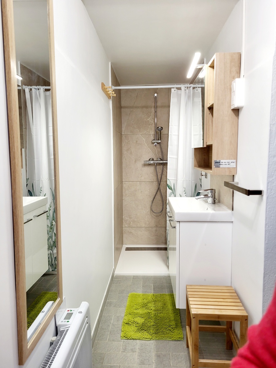 - a shower room: shower with mixer tap, washbasin and WC