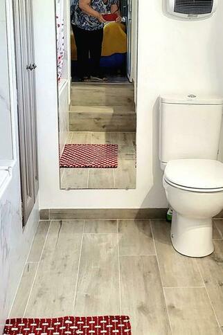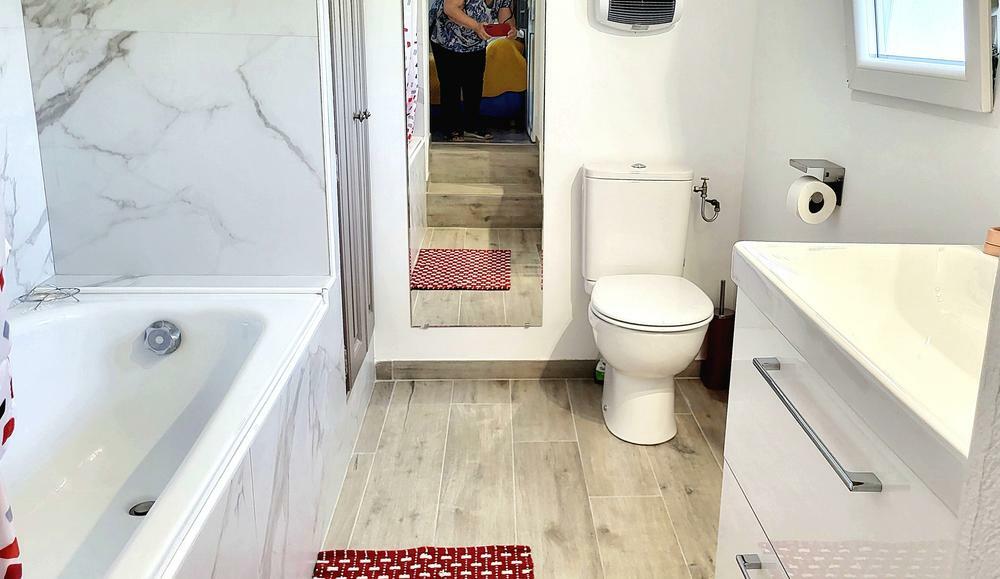 - A bathroom: bath with mixer tap, washbasin and WC,