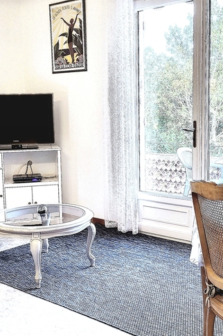 - A large 30m² living room (with a 160cm bed), opening onto a south-facing balcony through a large bay window,
