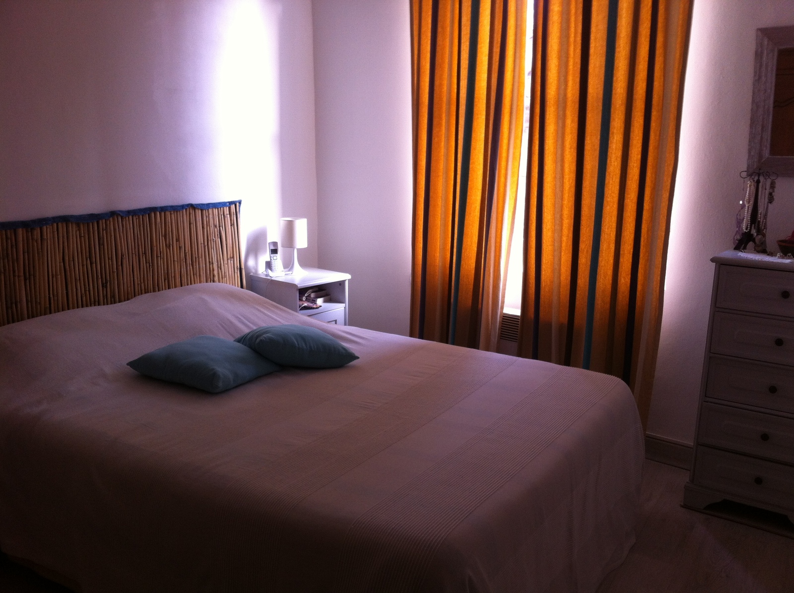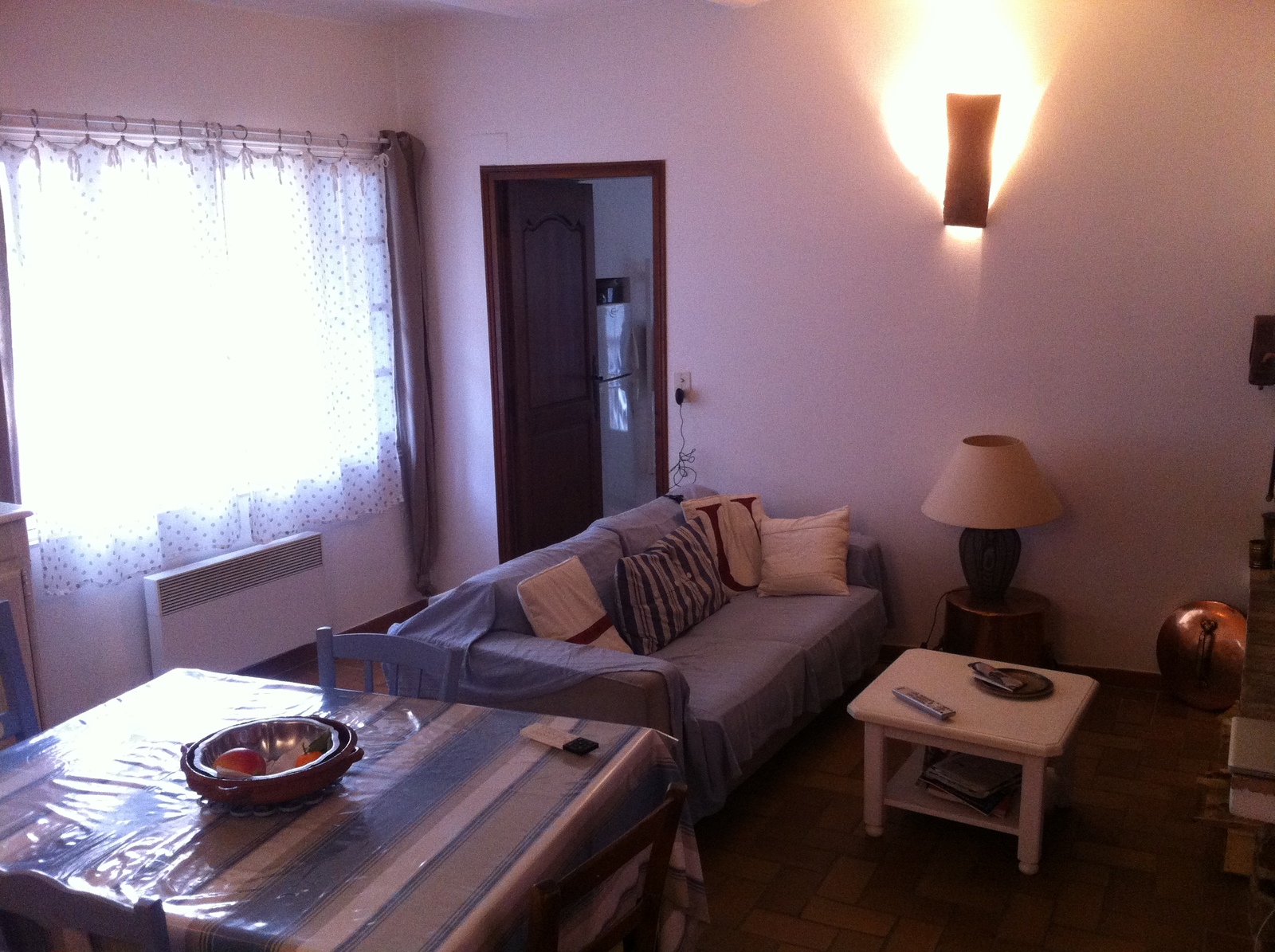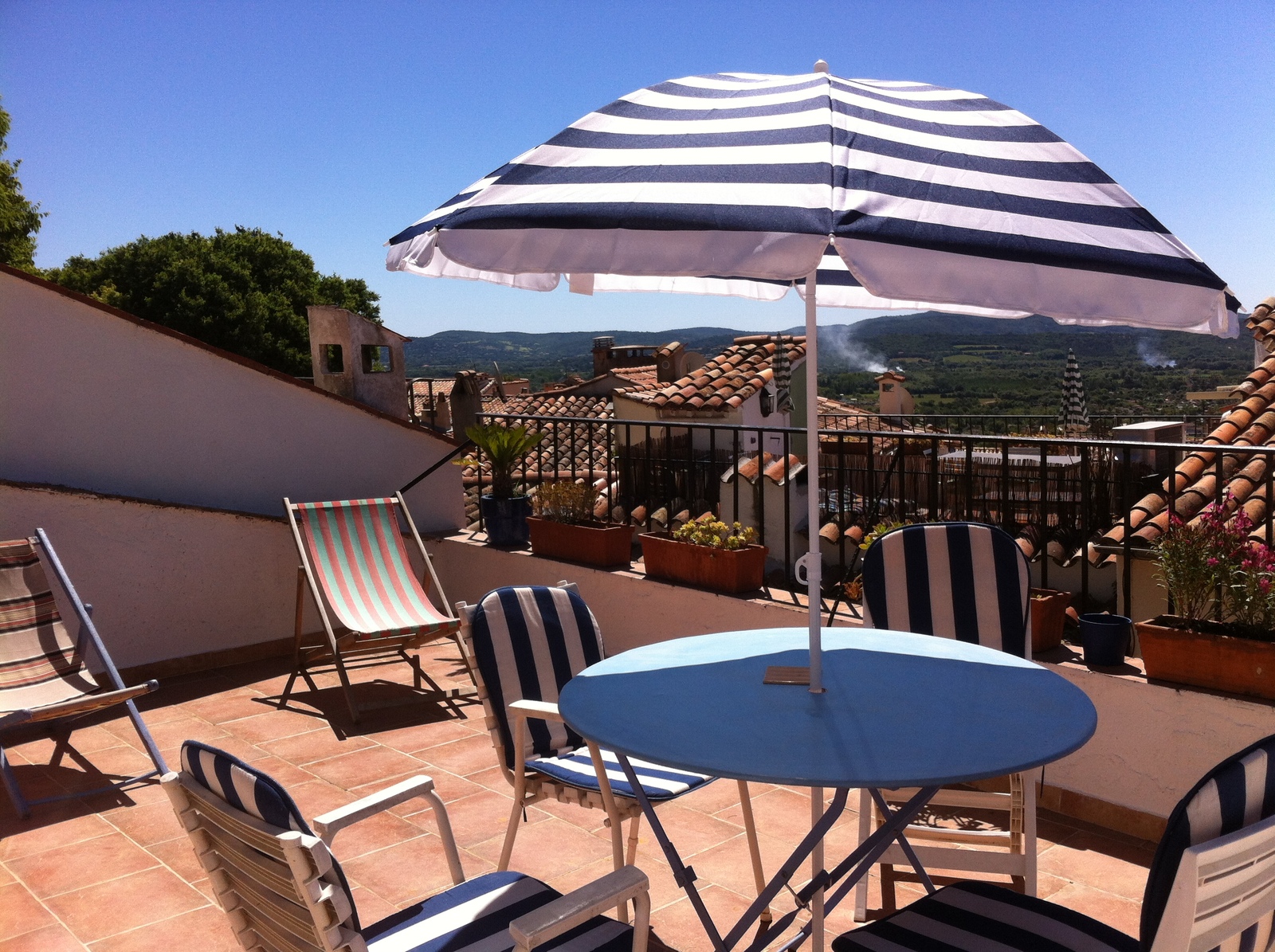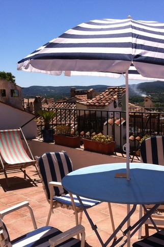 Village house under remparts. Equipped kitchen with patio. To the first floor, 2 besdrooms with one shower room and an independant WC and a small terrace.To the second floor, a terrace with a pleasant view on St-Tropez Gulf and castle.