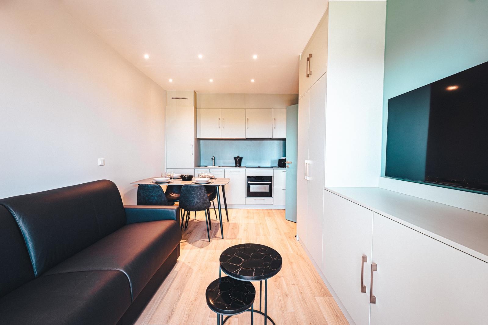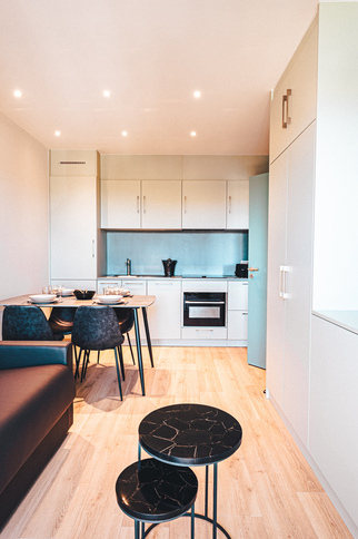 Located on the second floor, this comfortable apartment boasts a balcony offering exceptional views of the canal. It features a separate bedroom with high-end bedding, a living room with a double sofa bed, a fully equipped kitchen and a bathroom with a large shower, creating a warm and exclusive atmosphere.
