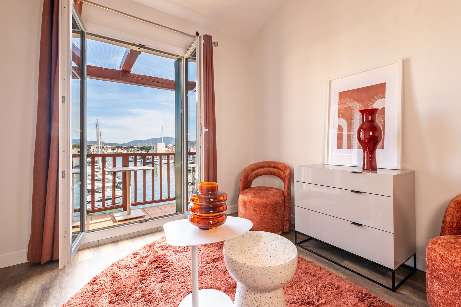 Discover the Appartements du Suffren ****, a spacious and independent alternative to our rooms and suites. Here, a flat for 4 people with a view of the Port Grimaud Marina.