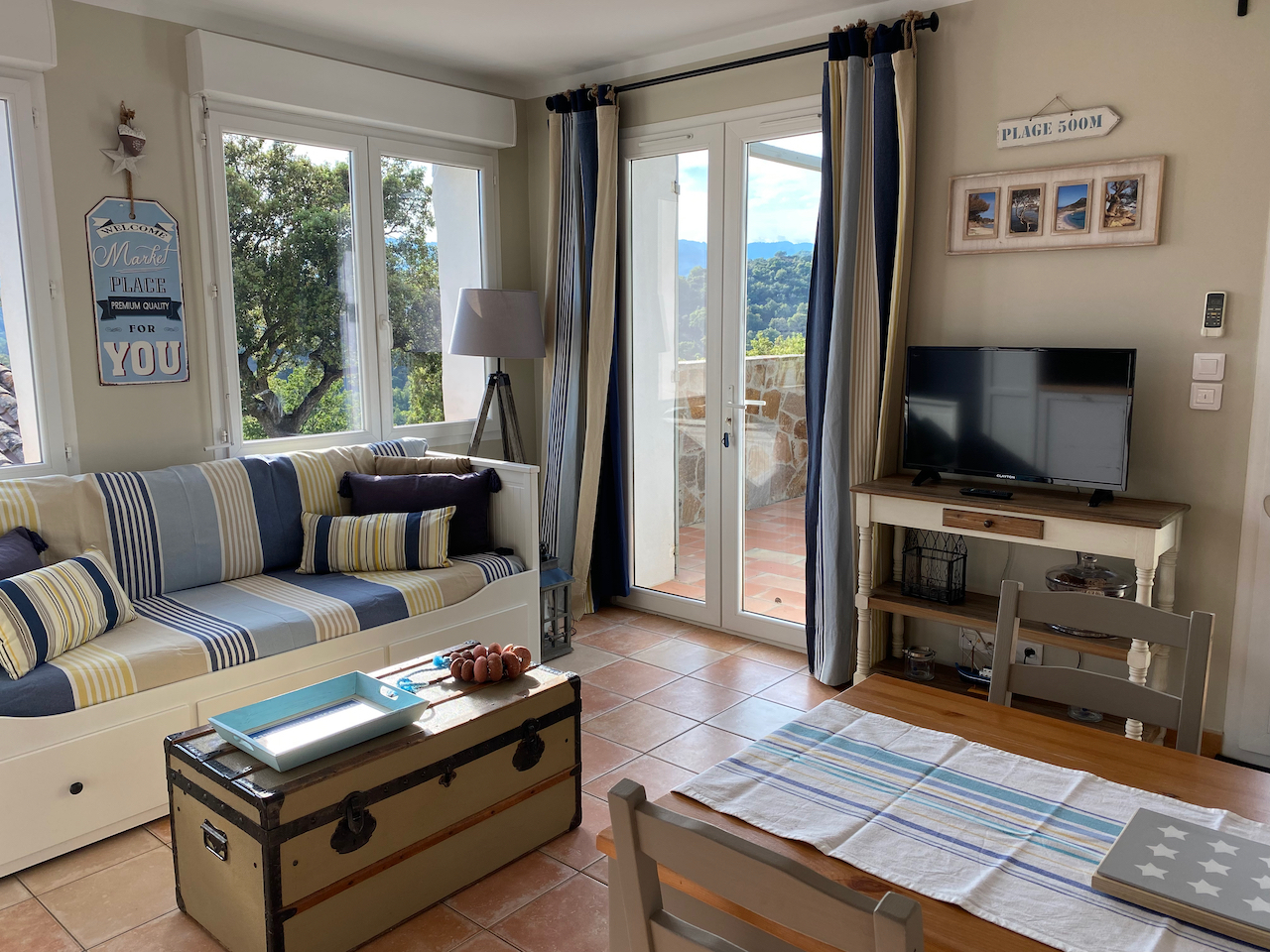 Its terrace, offering a magnificent view on Grimaud countryside will seduce you during family meals.