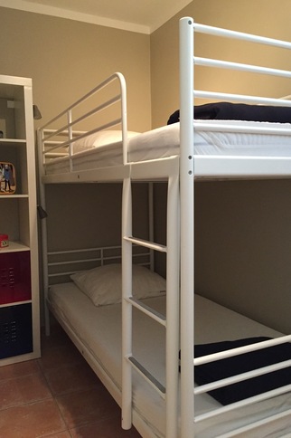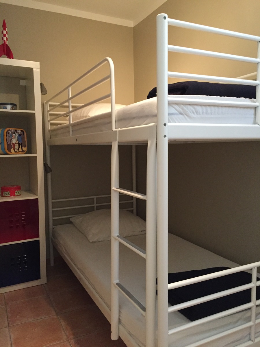 A bedroom with a bed 160x200 and cupboards. A little bedroom for children with a bunk bed 90x200.