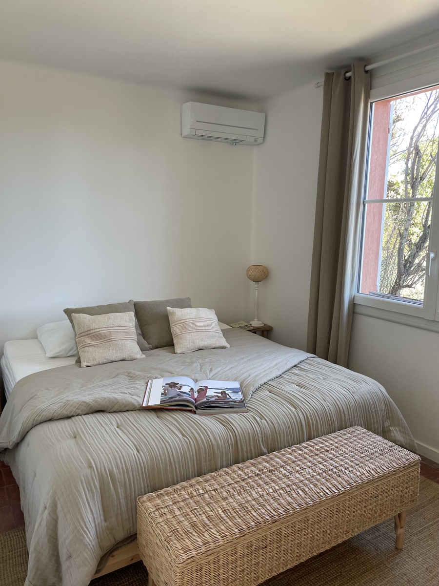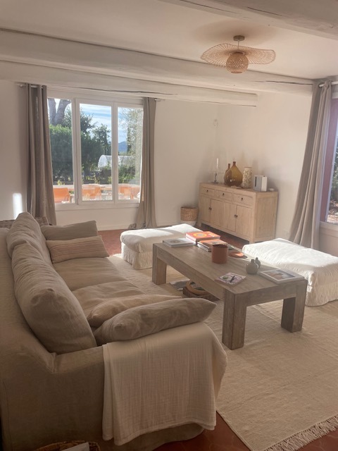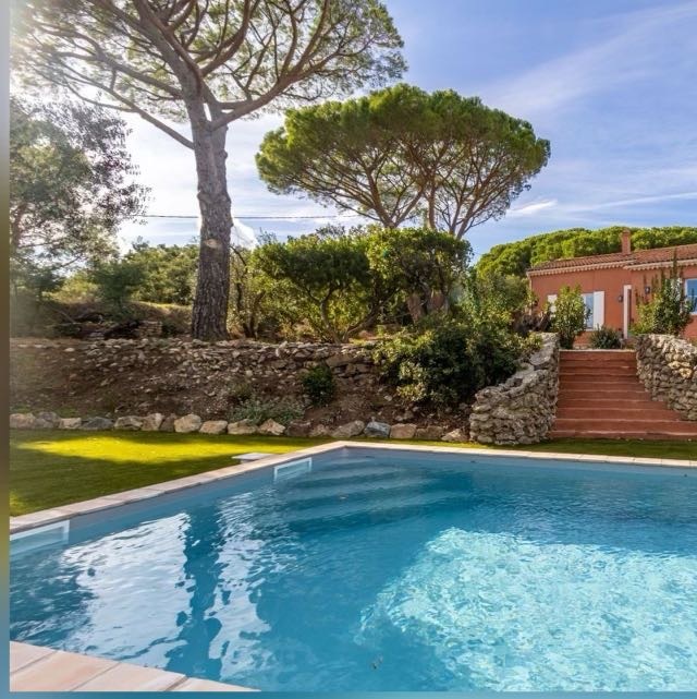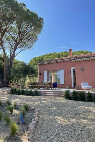 Our single-storey, unoverlooked Provencal-style house, on a 1700m2 property planted with trees, is just a stone's throw from the village of Grimaud.