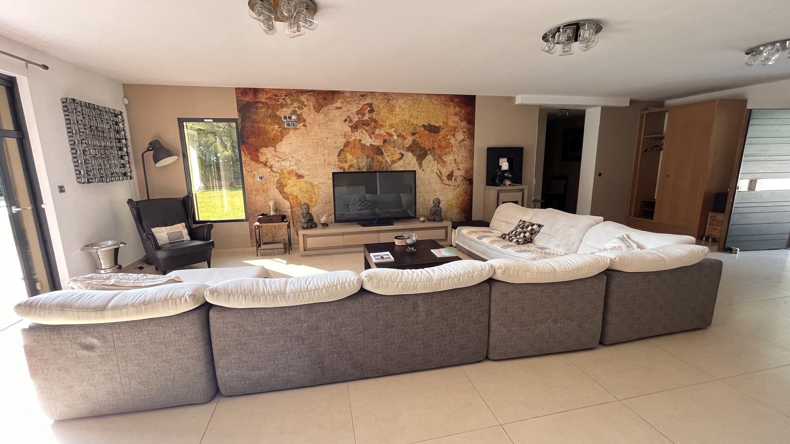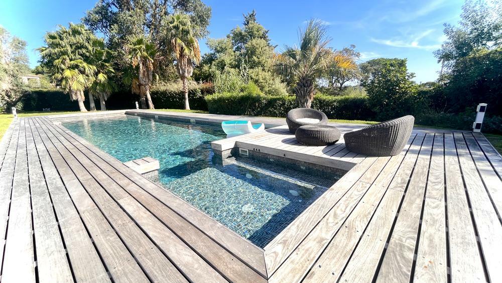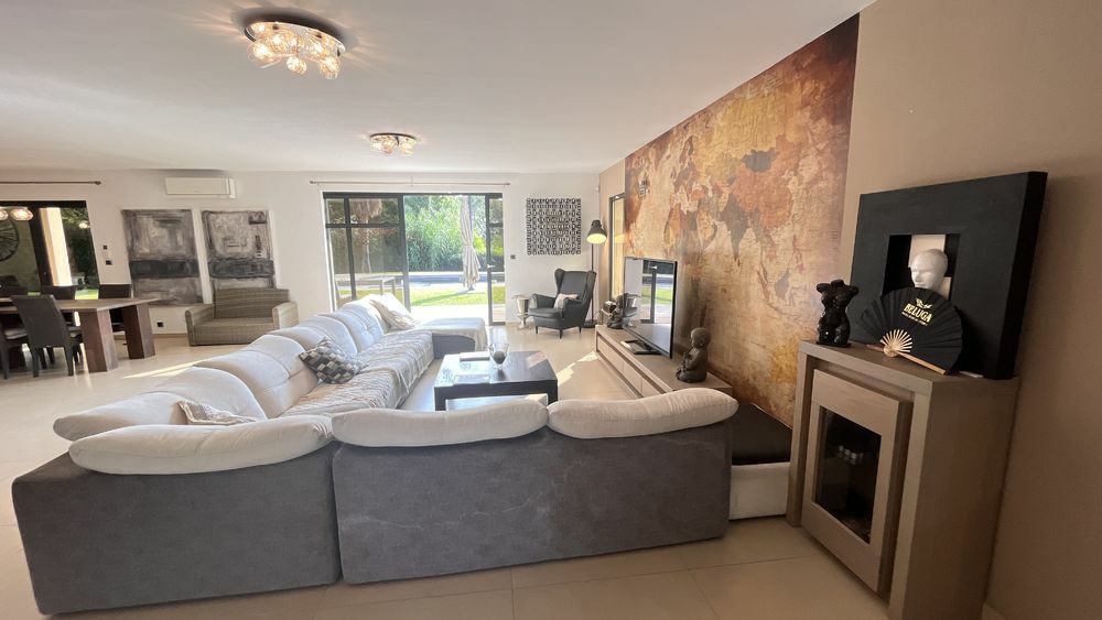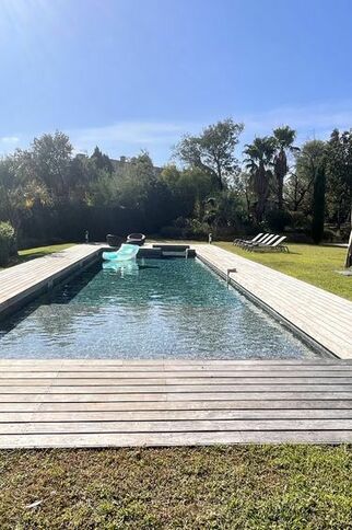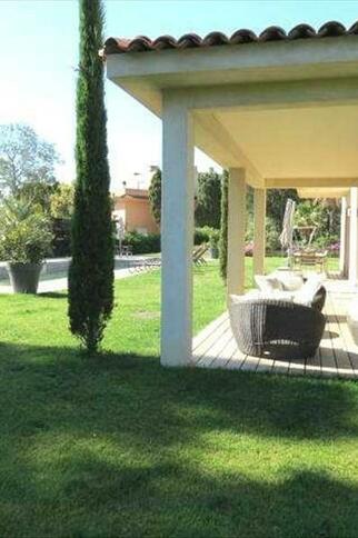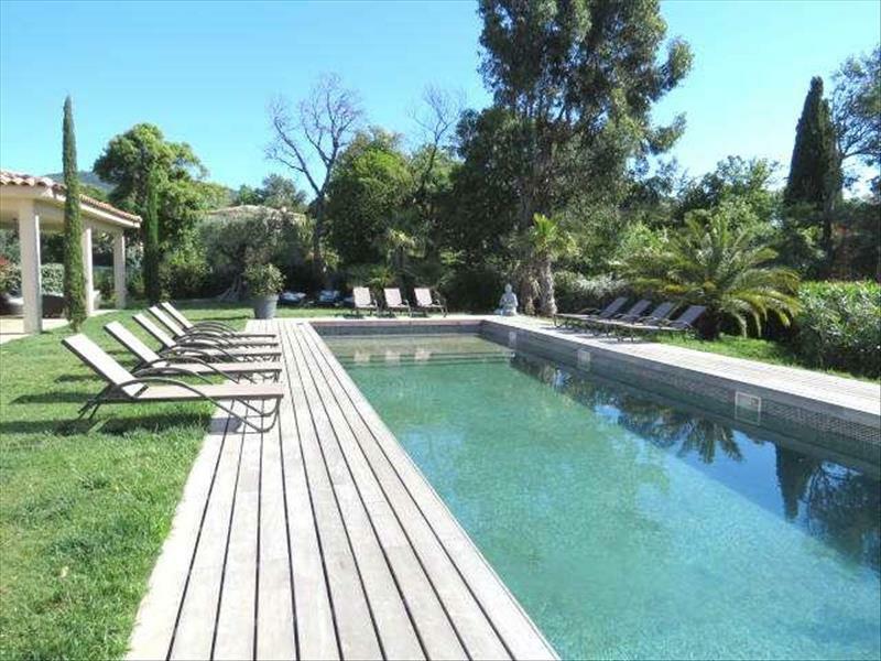 Beautiful, spacious house with a chic, contemporary style, located in the famous Domaine de Beauvallon between Grimaud and Sainte-Maxime. It has a large landscaped garden with lush lawns, an idyllic sea view and a large swimming pool. The ideal combination for relaxing days spent lazing in the summer sun.With 7 bedrooms, it can accommodate a large family or a group of friends.