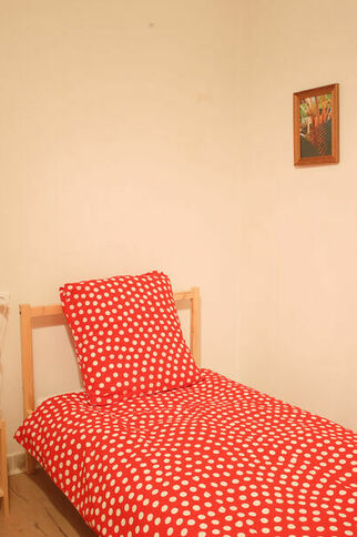 Appartment with private entrance, 2 bedrooms, 1 living room with an open kicthen, balcony, bathroom with a shower.