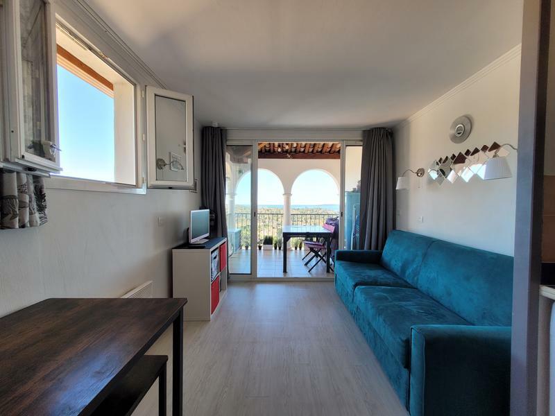 Breathtaking views over the Gulf of Saint-Tropez from this 26m2 air-conditioned studio with sleeping area and terrace. Ideal for 2 adults and 2 children. Landscape and water park. Easy holidays! Wi-Fi