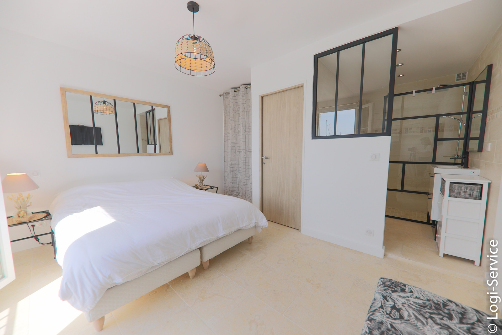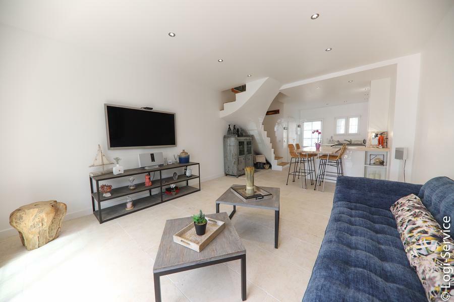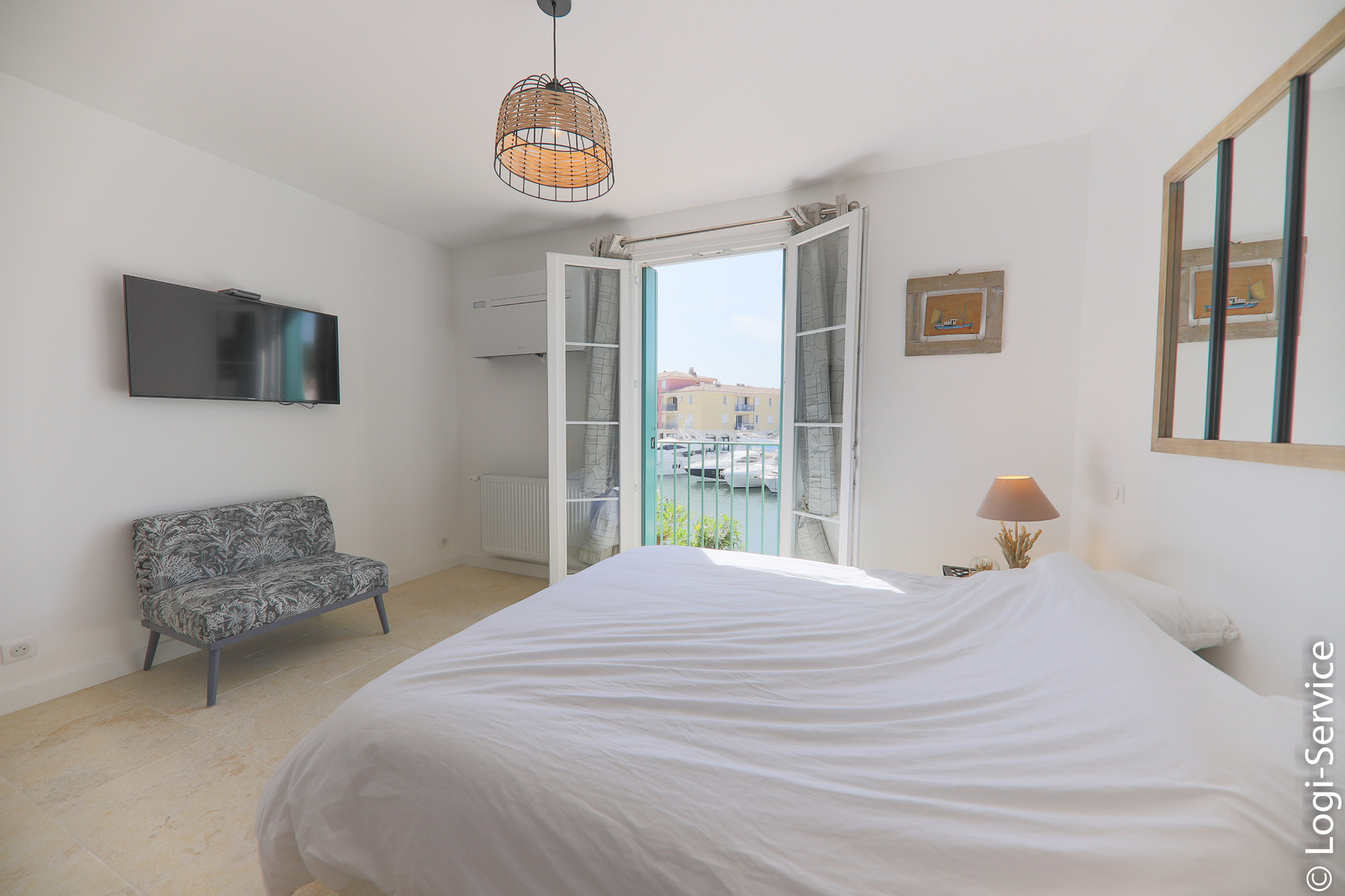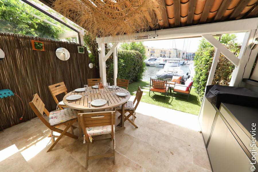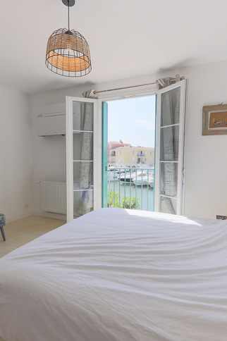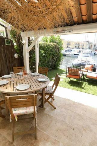 The ground floor comprises a fully equipped kitchen opening onto the living room, a large west-facing semi-covered terrace with mooring and a guest toilet.On the 1st floor, an en suite bedroom with toilet and shower, a bedroom and a shower room with toilet.