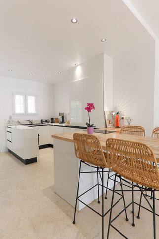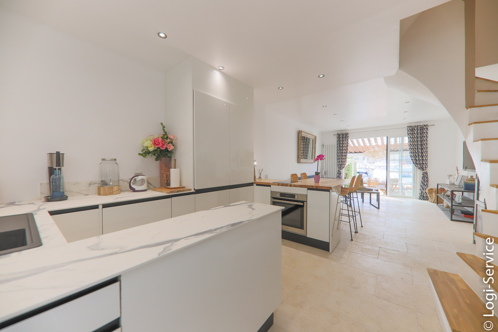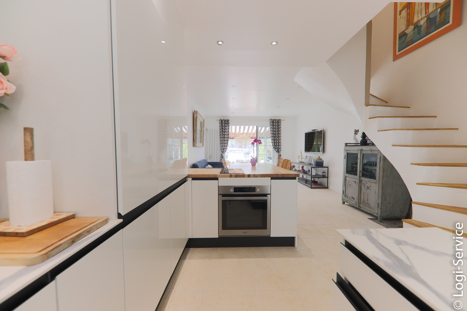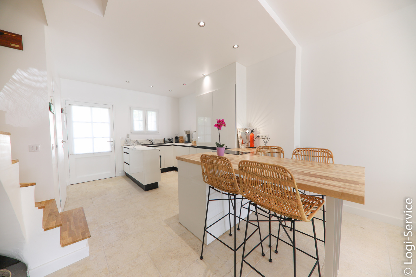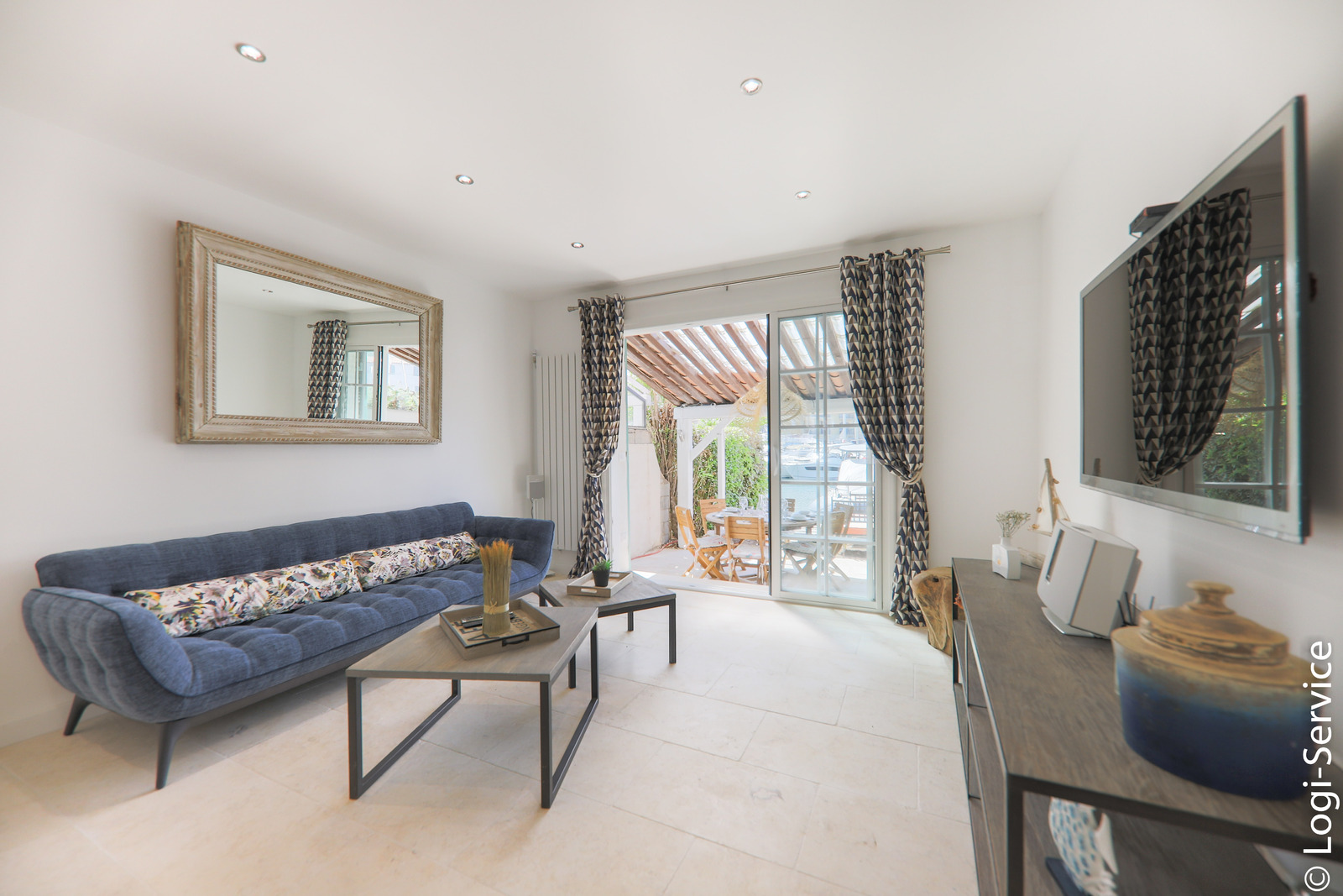 The ground floor comprises a fully equipped kitchen opening onto the living room, a large west-facing semi-covered terrace with mooring and a guest toilet.On the 1st floor, an en suite bedroom with toilet and shower, a bedroom and a shower room with toilet.