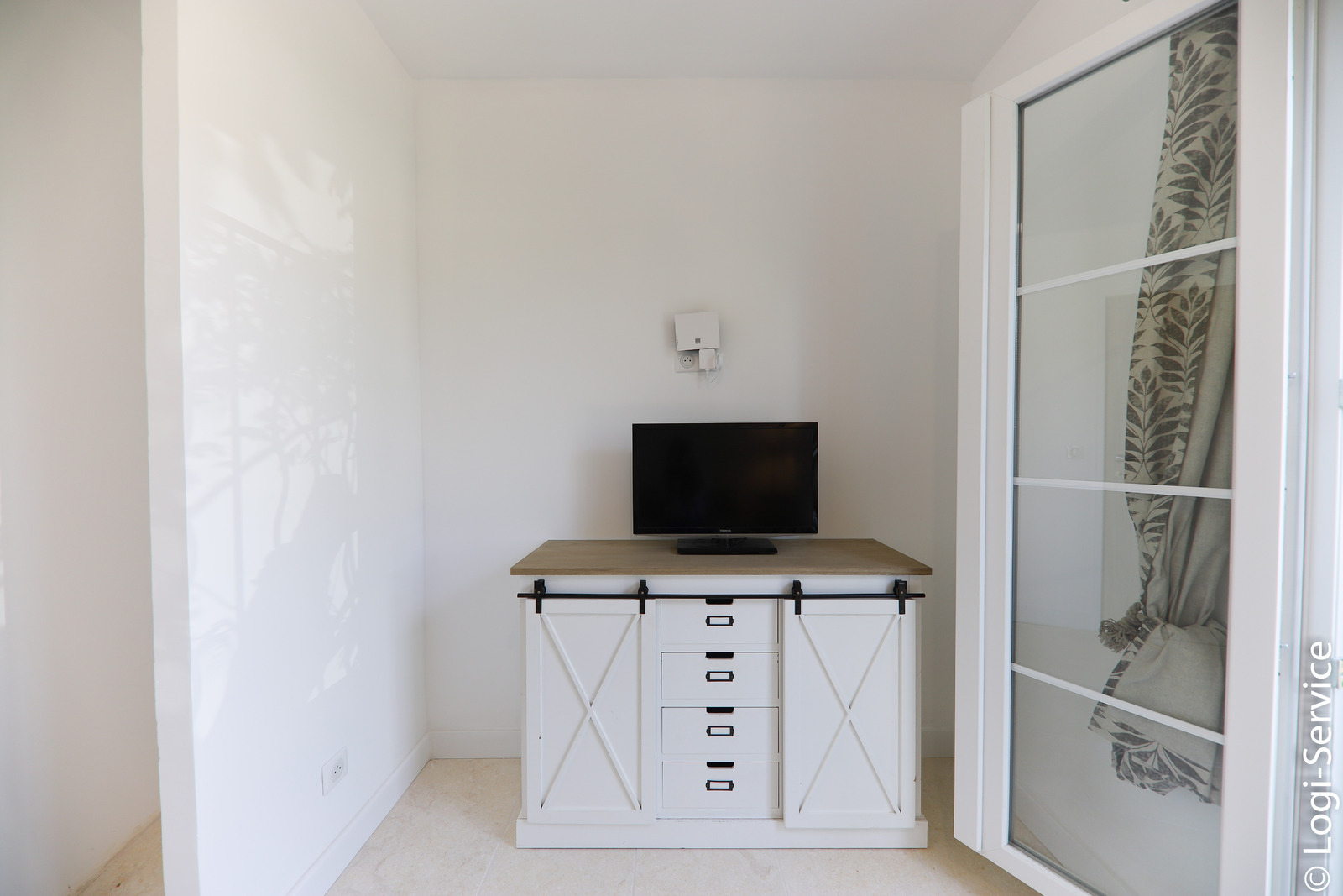 In a residential area, 4-bedroom house with air conditioning in 2 bedrooms, internet access and 13m mooring.