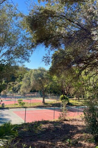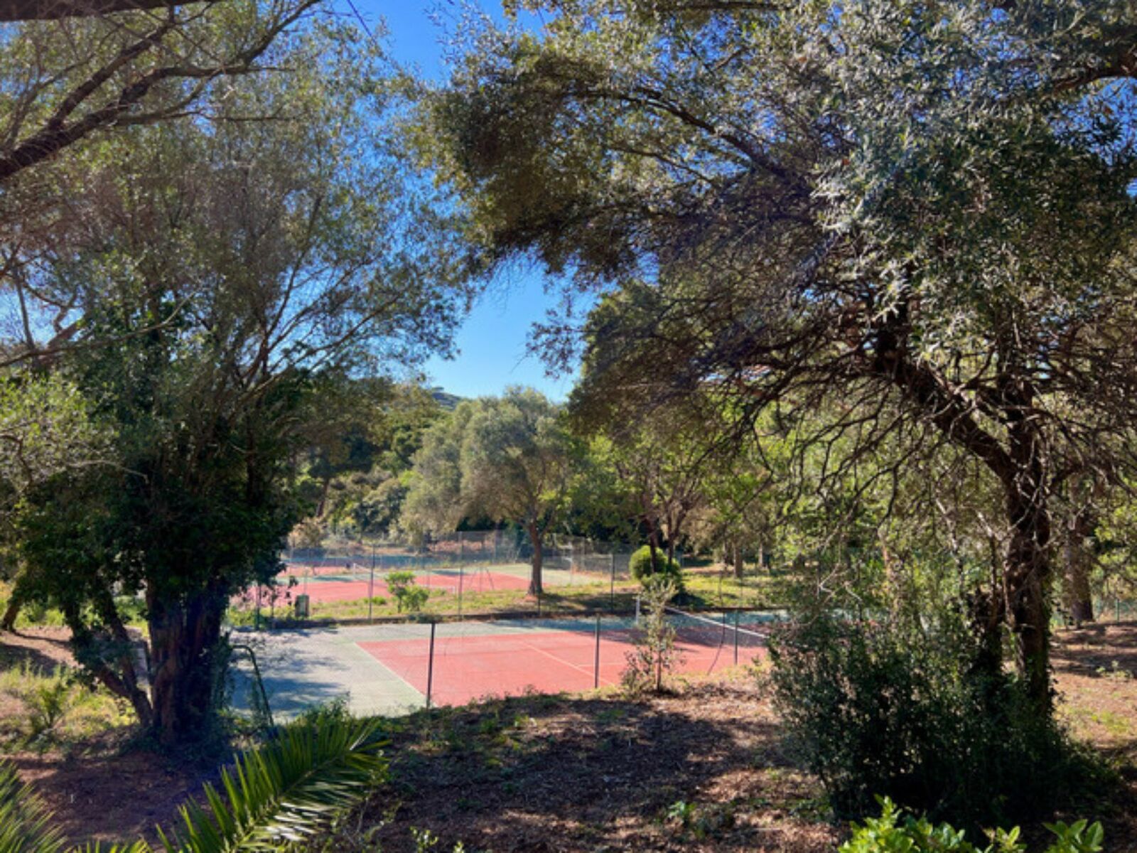 the swimming pool and tennis courts of the residence. Car park.