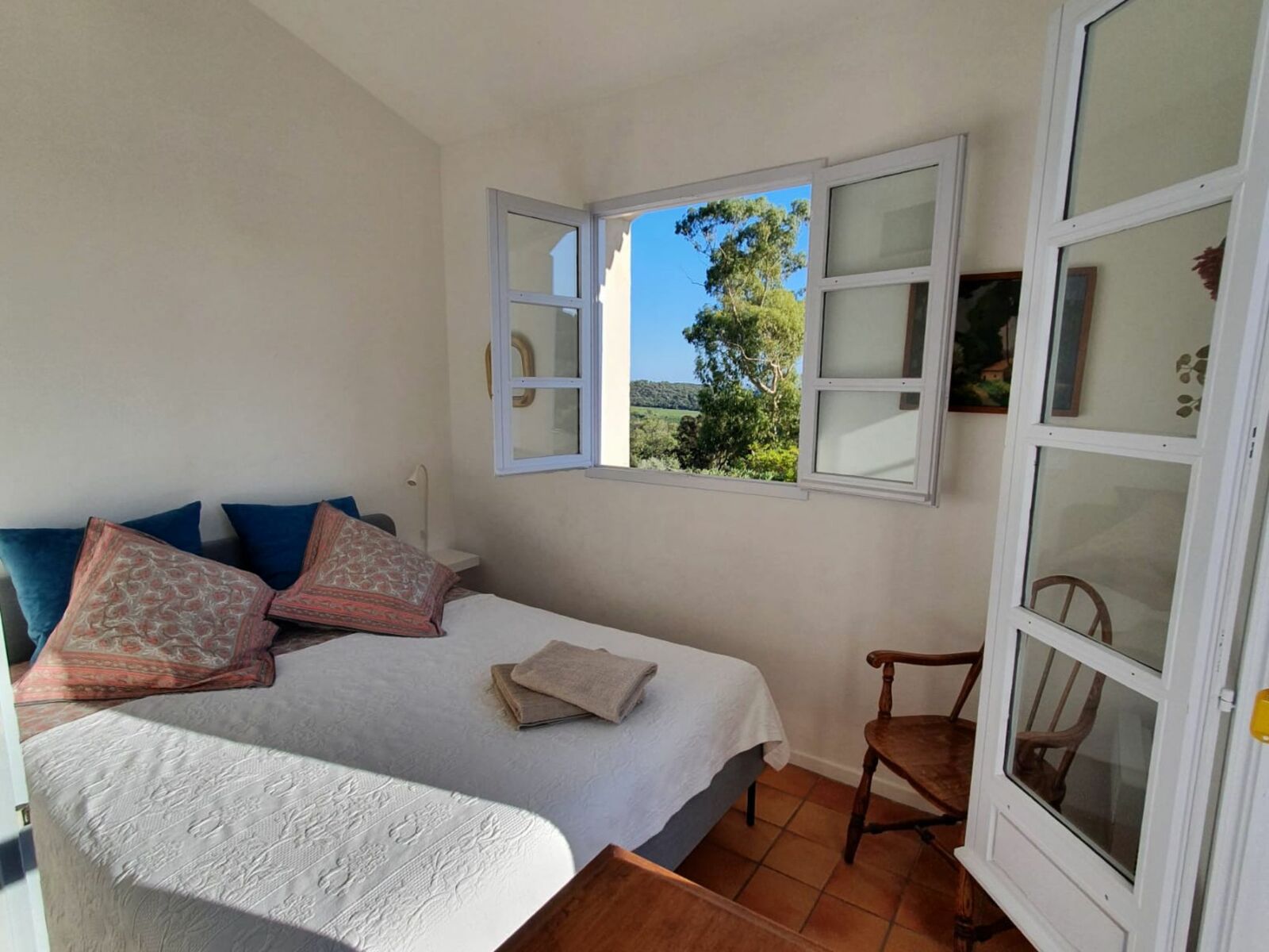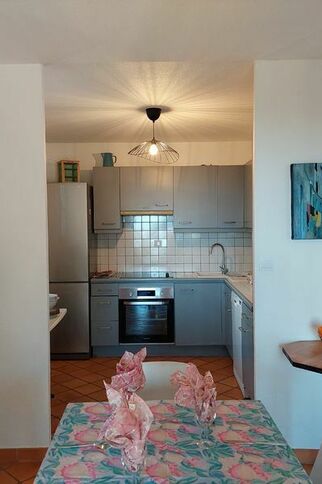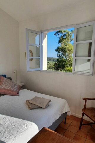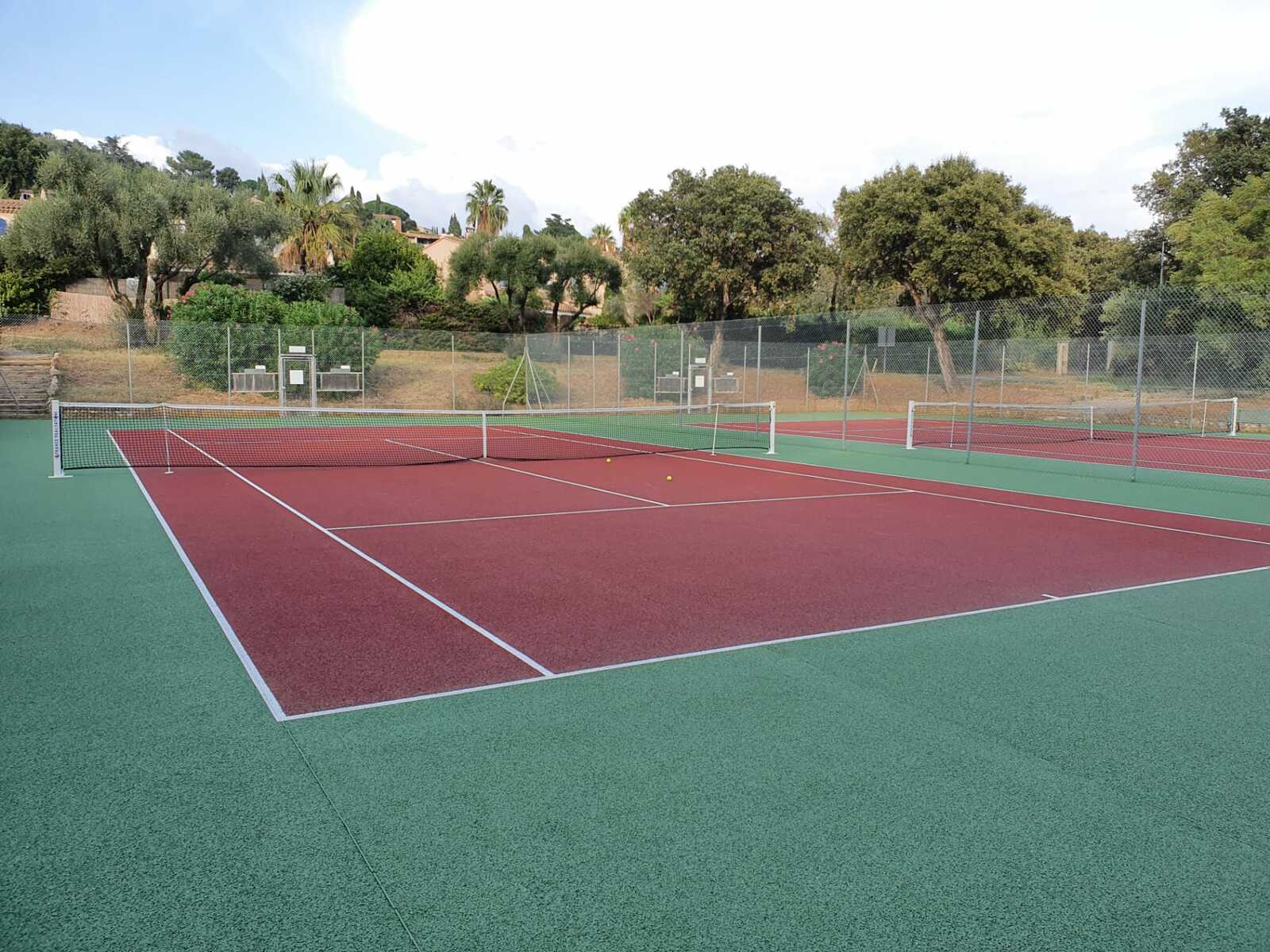 The house has 2 bedrooms upstairs and an open plan living/dining/kitchen on the first floor overlooking a beautiful garden. The kitchen is very well equipped. The first floor has a terrace with beautiful views. Tenants have access to two swimming pools (June-September) and four newly renovated tennis courts. Cable TV and wifi.