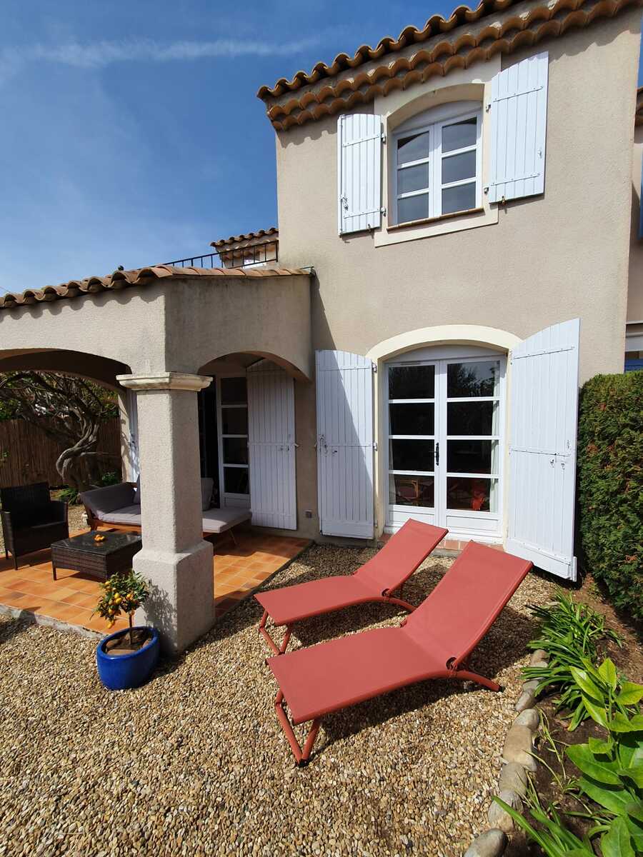 A house at 2 steps from the village, with terrace and private garden, sea view, shared pool and tennis court