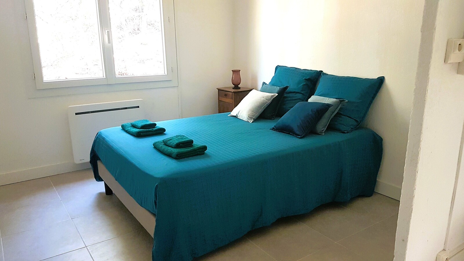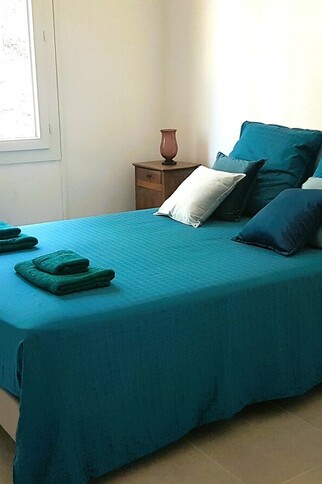 The 70 m² house comfortably sleeps 4: 2 bedrooms with double beds, new kitchen, living room with fireplace and sofa bed, Italian-style shower room and terrace.