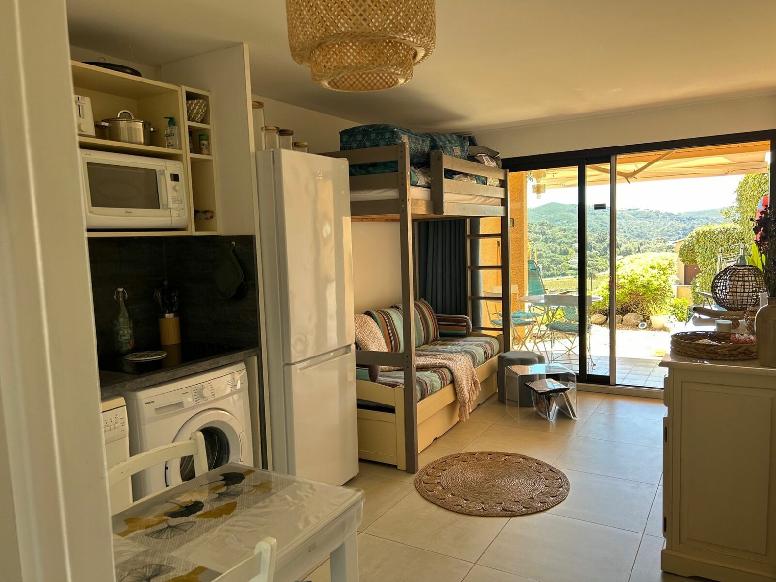 Bright and comfortable, this 1 bedroom refurbished flat is surrounded by greenery and had a swimming pool/tennis and petanque court.